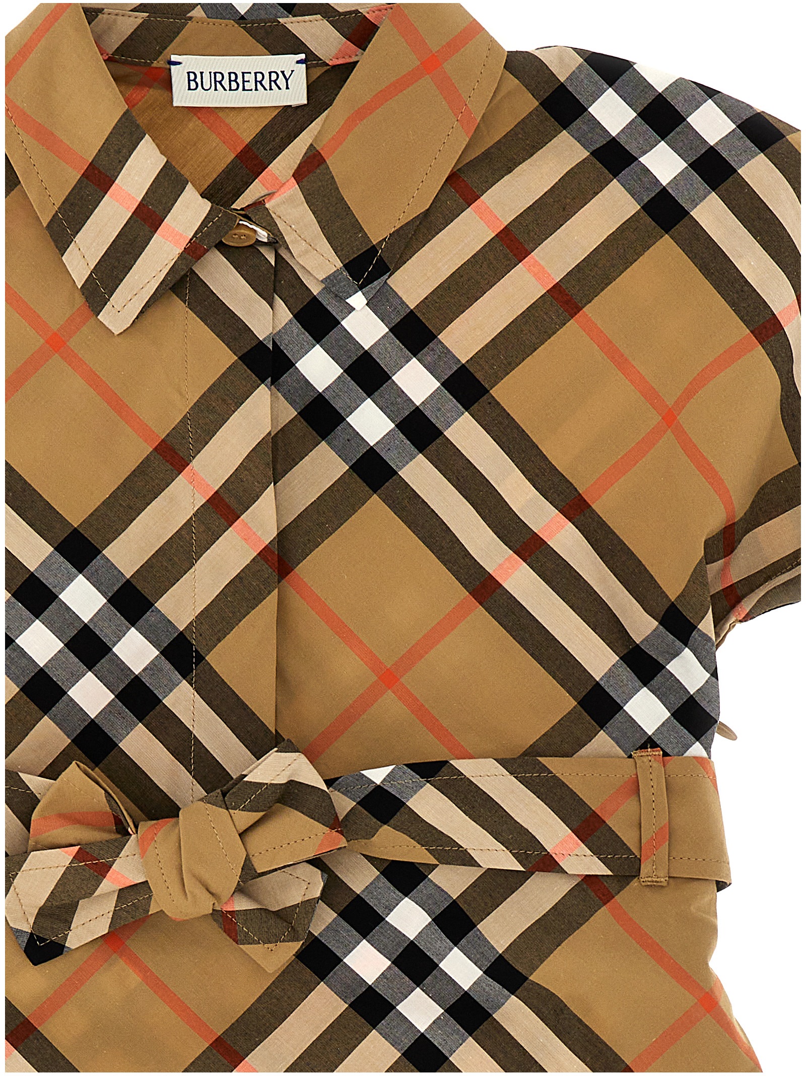 ‘Giulietta’ check print cotton dress, front buttons, bow belt at the waist, short sleeves.