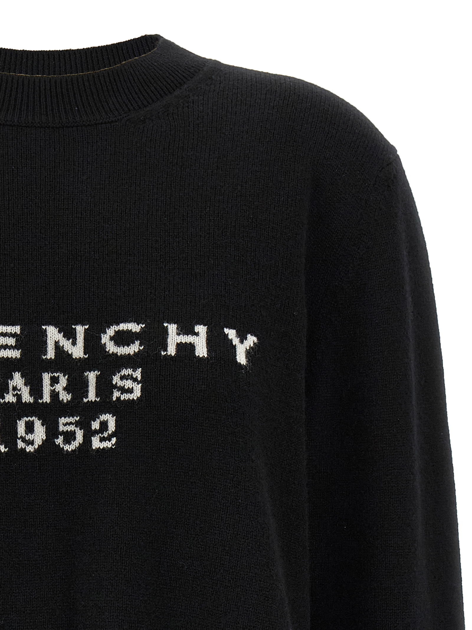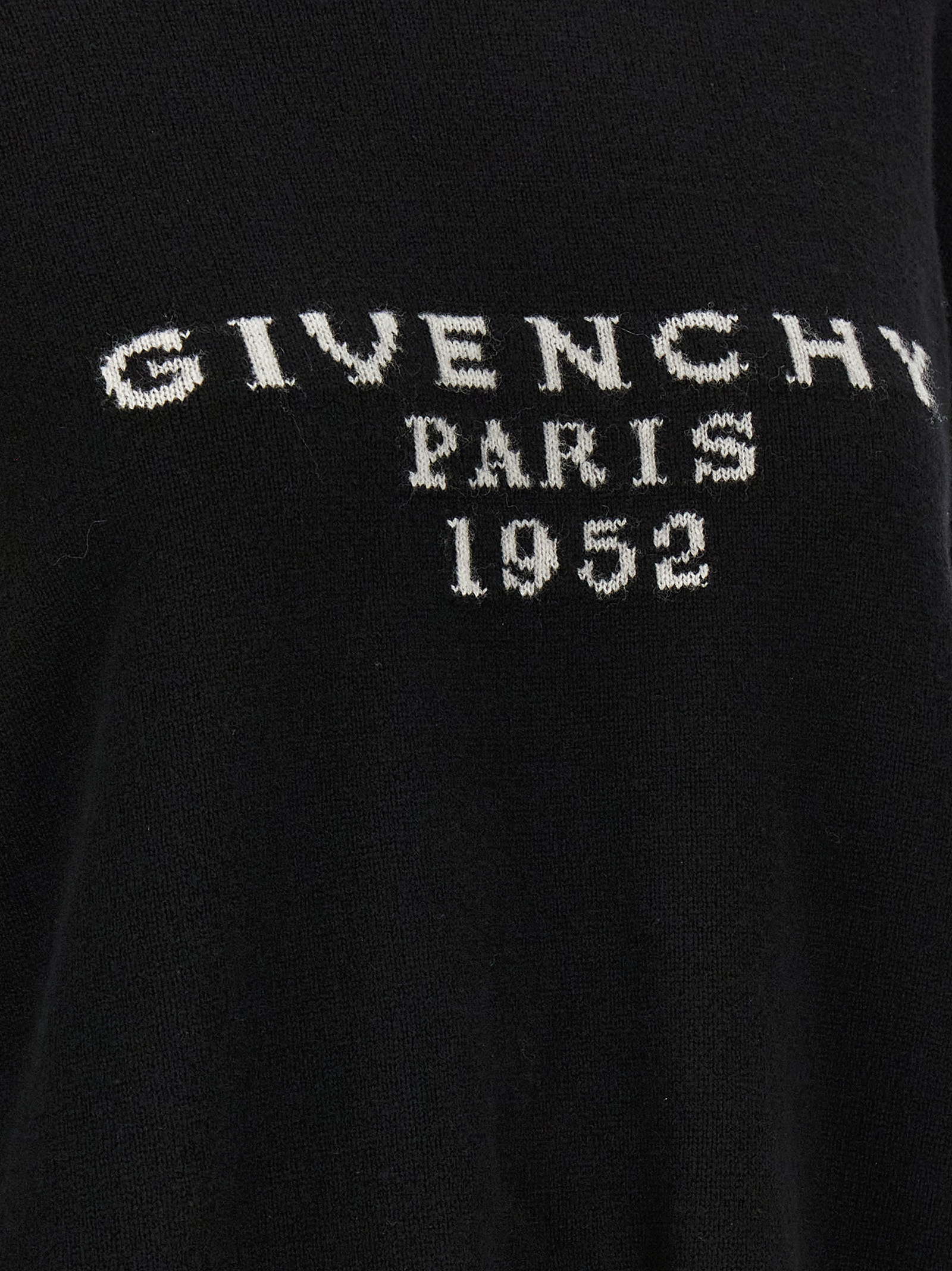Wool and cashmere sweater with front jacquard ‘GIVENCHY Paris 1952’, crew neck, long cuffed sleeves and slightly dropped shoulders.