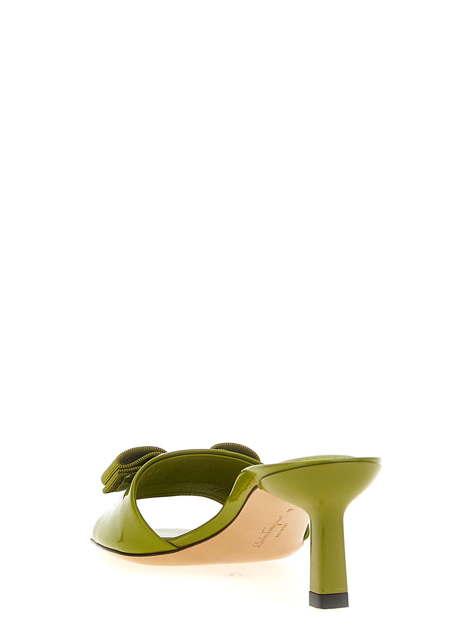 ‘Glo’ leather mules with bow at the front.