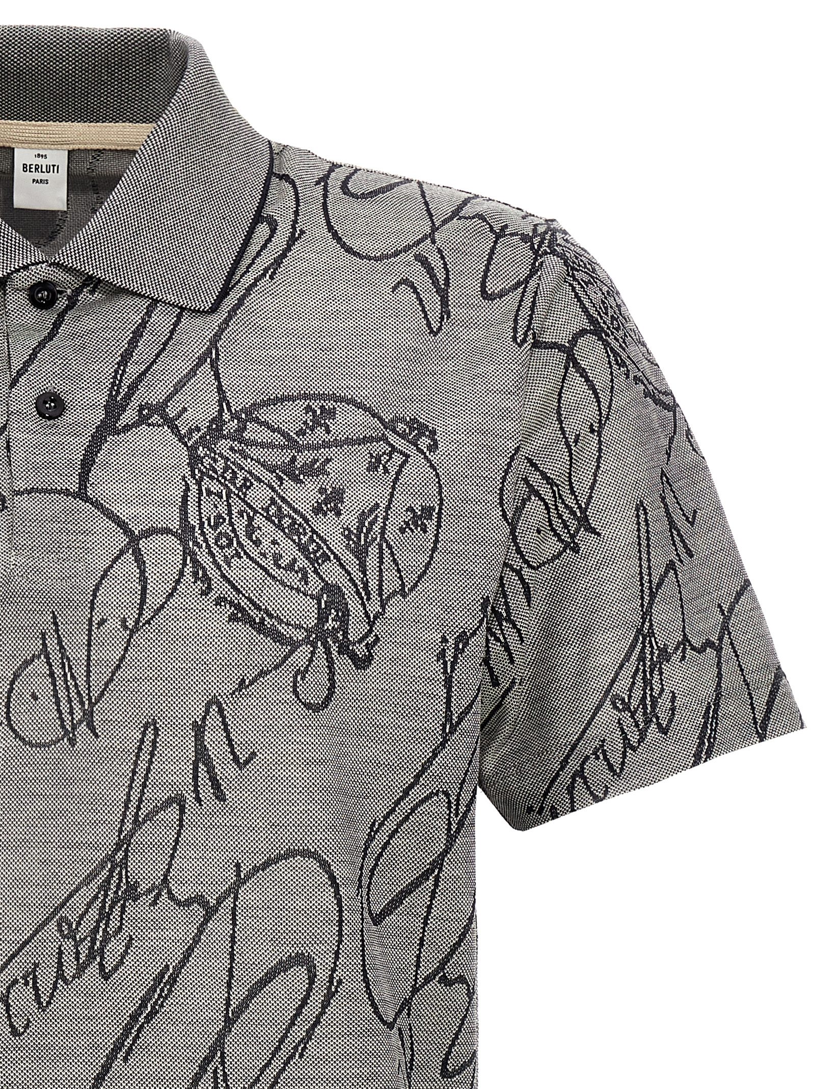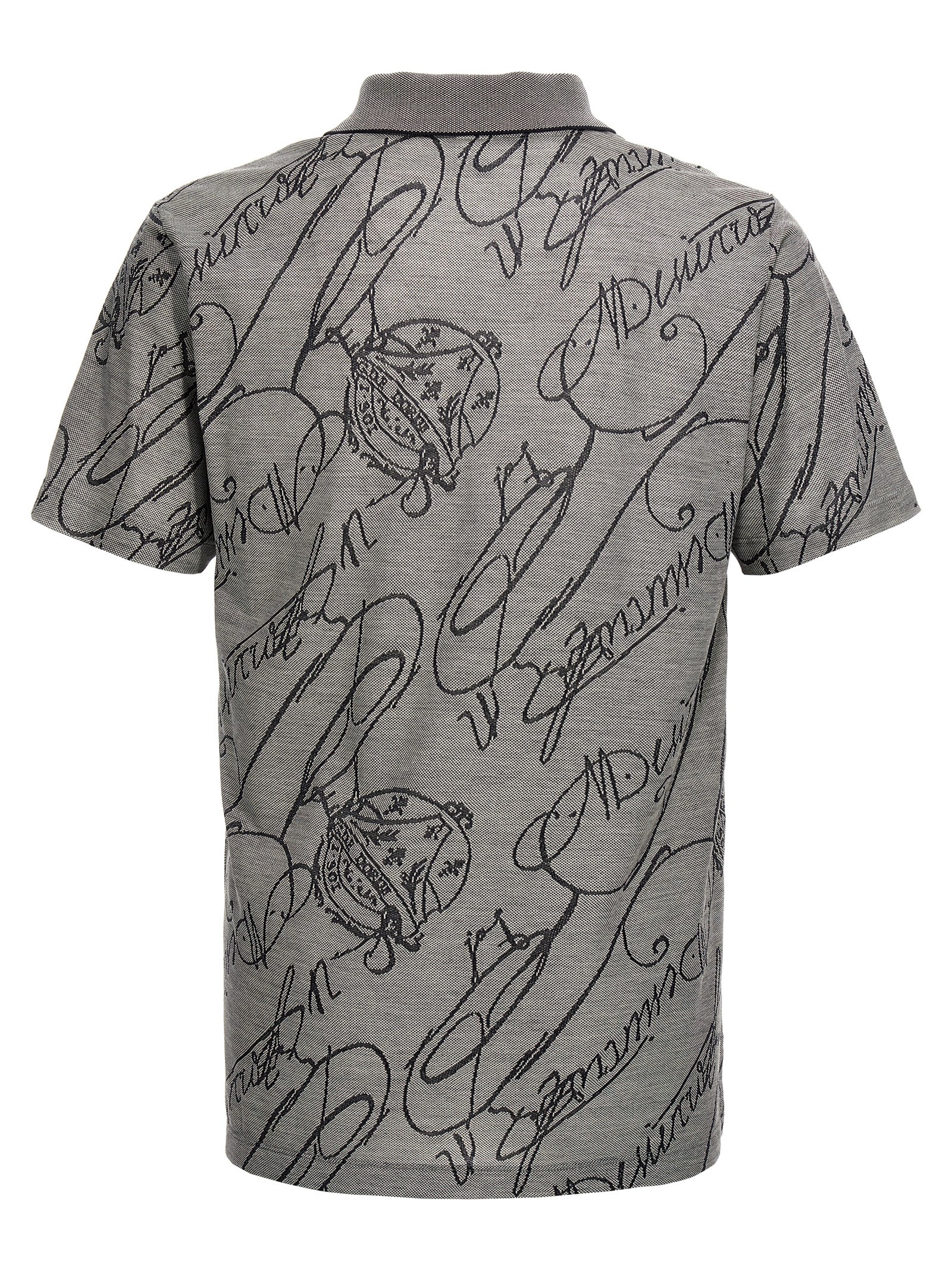 ‘Gradient Scritto’ cotton polo shirt with all-over jacquard pattern and short sleeves.
