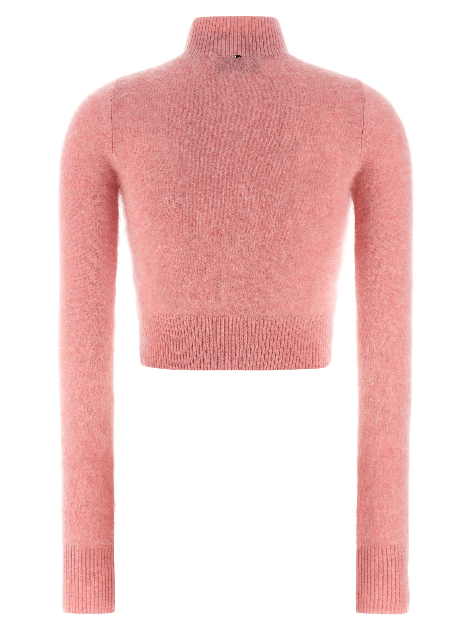 ‘Gubbio’ cashmere sweater, crop model, high neck, long cuffed sleeves.