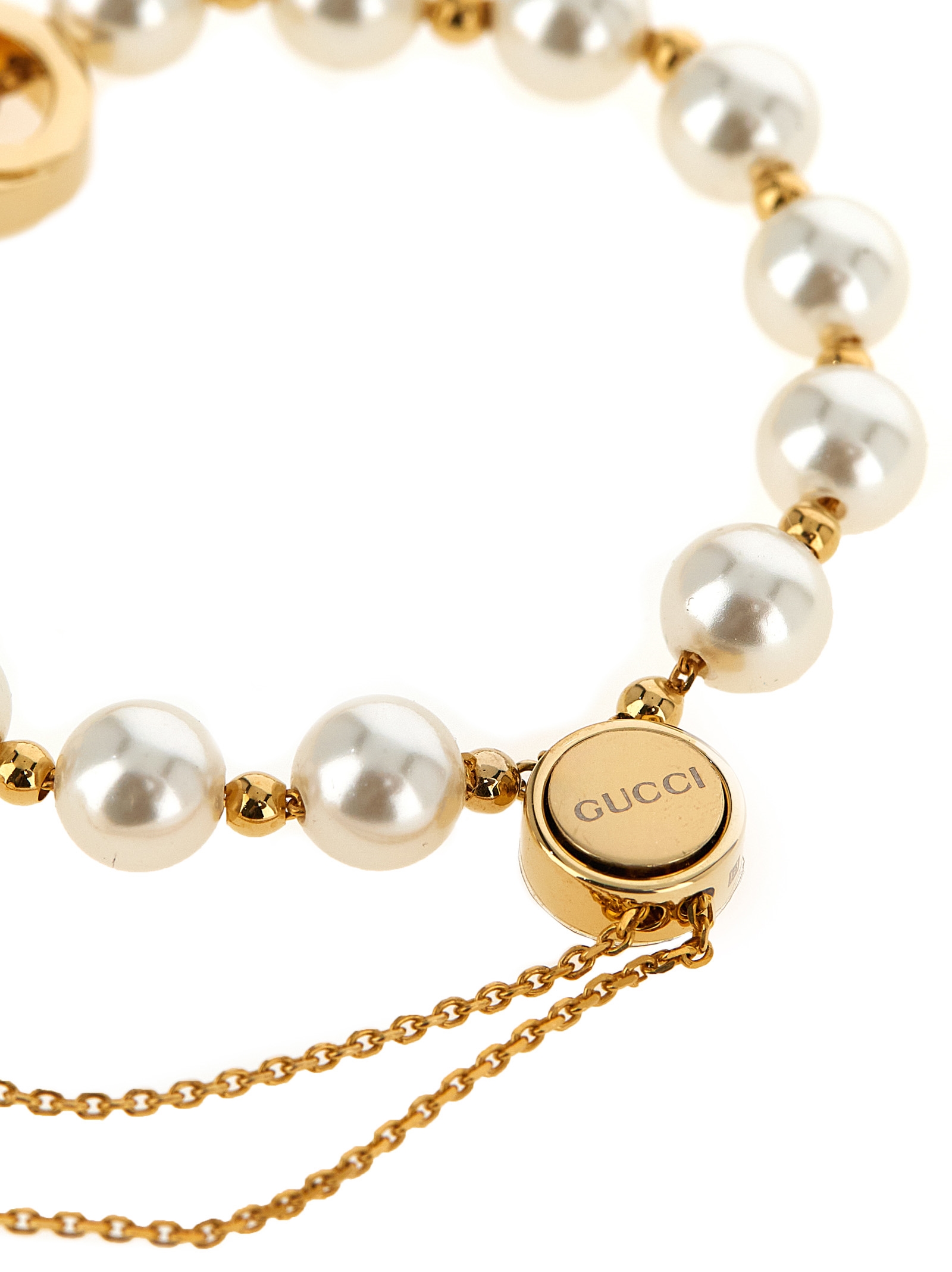 Boule chain ‘Gucci Interlocking’ bracelet with resin beads and metal cut-out ‘Incrocio GG Tondo’ bracelet, adjustable sliding closure.