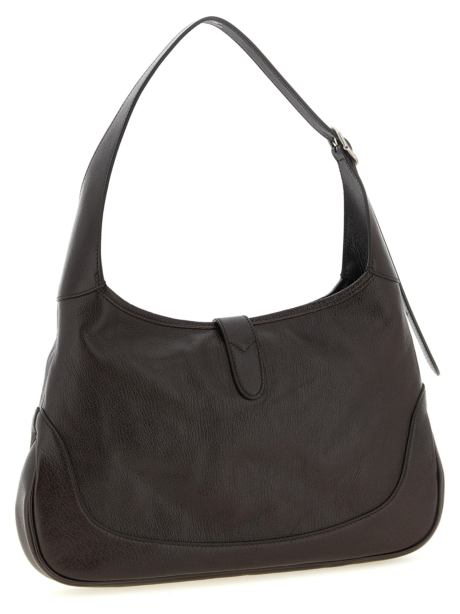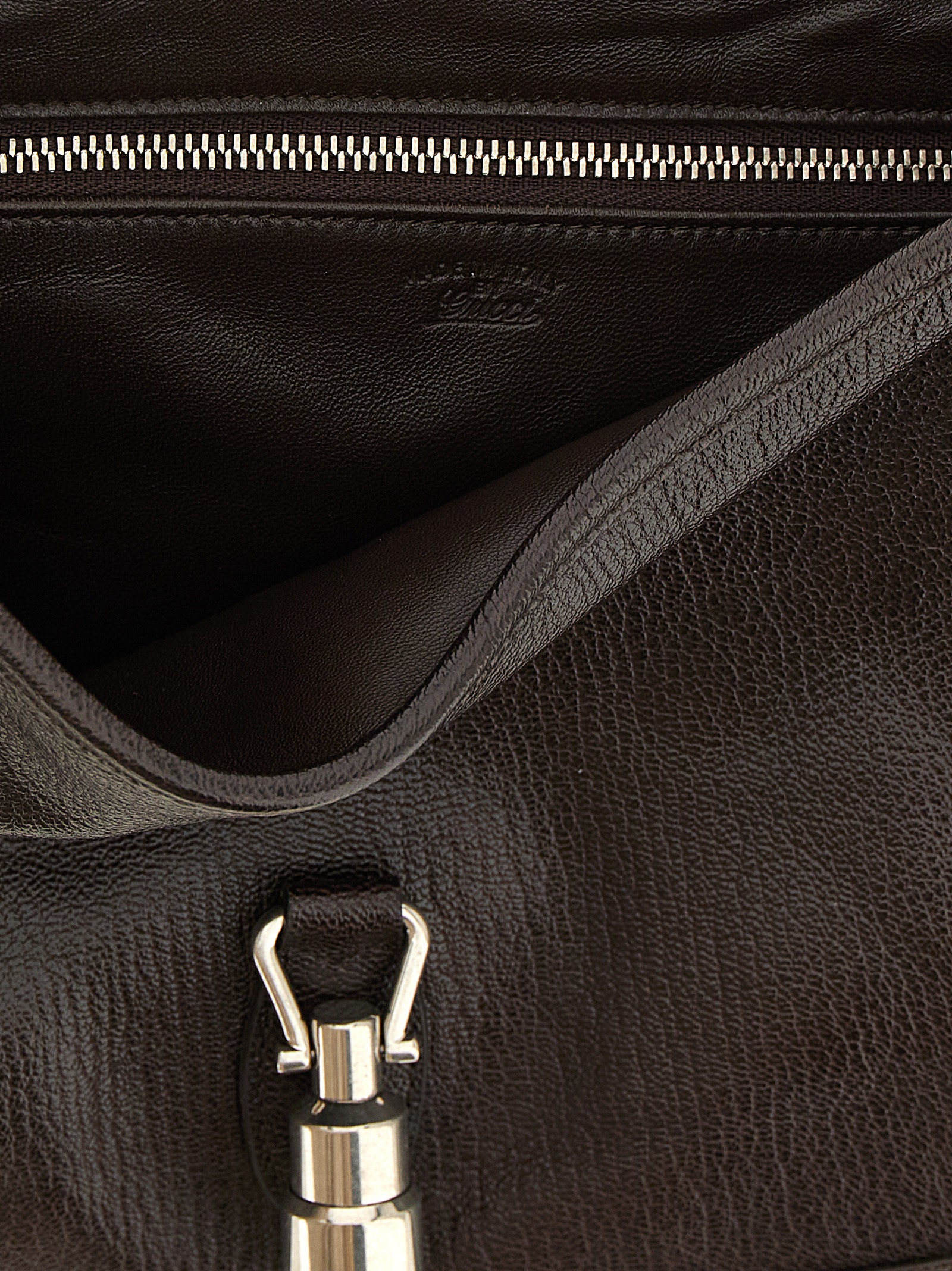 ‘Gucci Jackie 1961’ shoulder bag in hand-aged hammered leather to create a vintage effect, nappa lining, metal piston closure with engraved logo, adjustable handle, adjustable and removable shoulder strap.