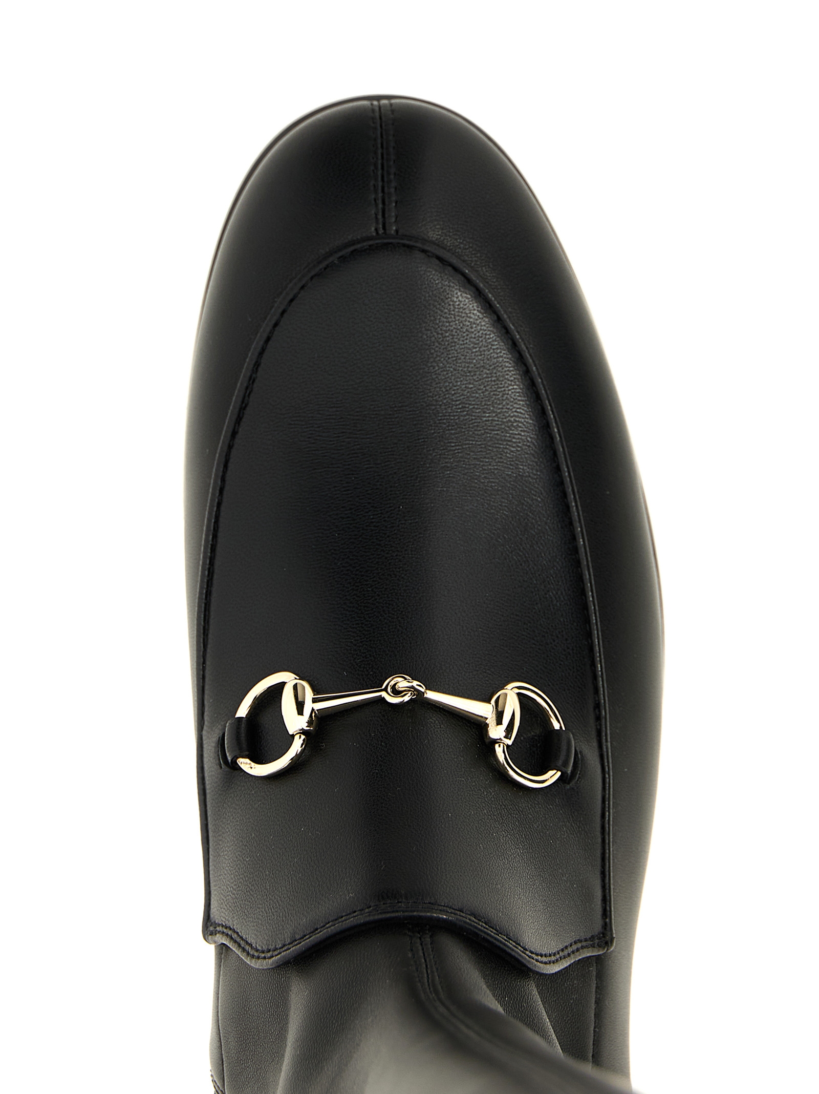 ‘Gucci Jordaan’ stretch leather boots, front metal clamp, side zip closure, leather sole.