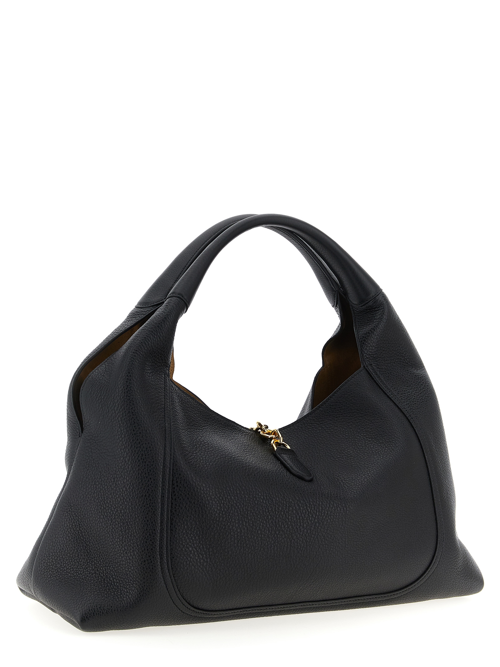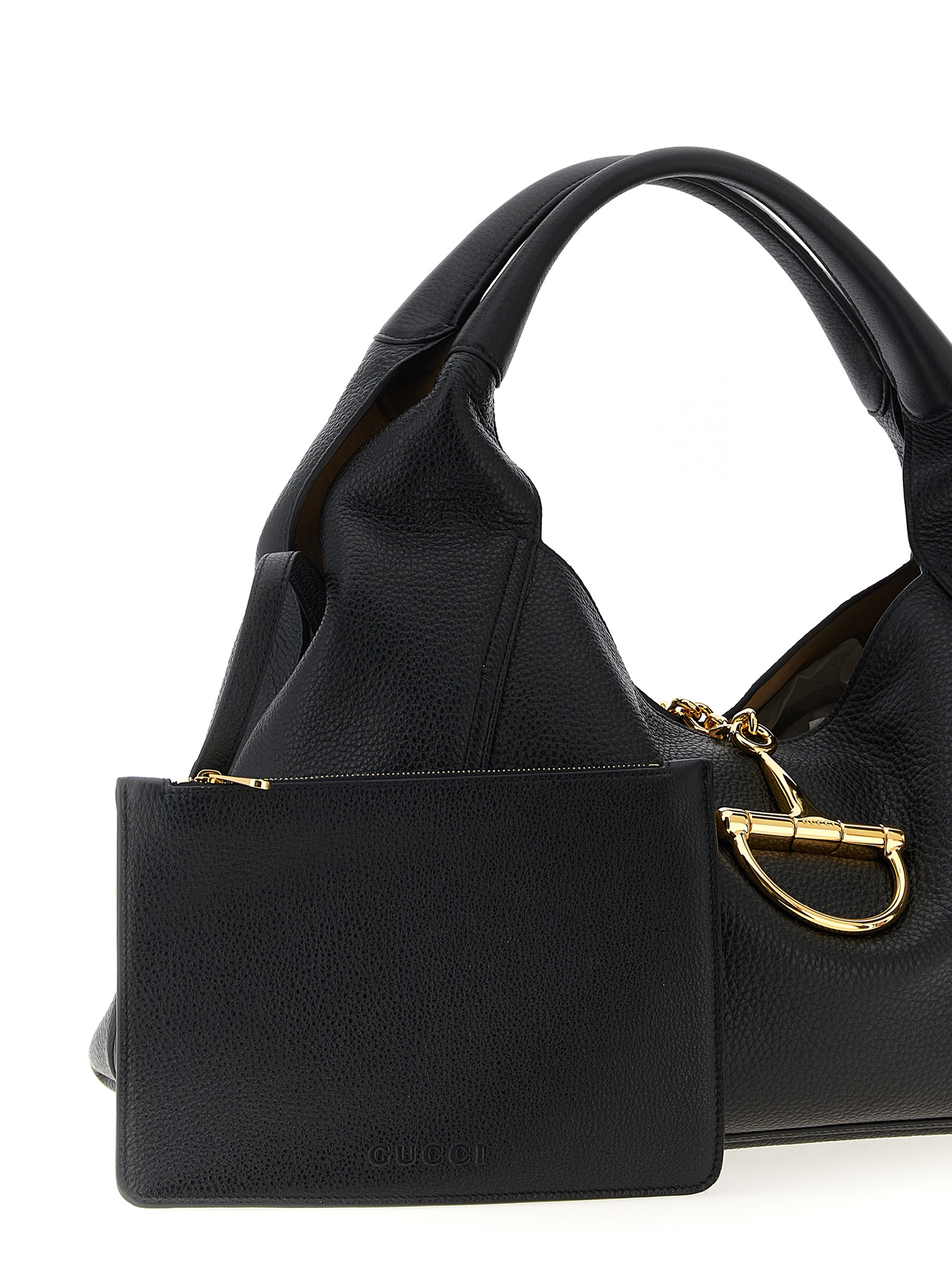 ‘Gucci Softbit’ maxi shoulder bag in hammered leather, double fixed handle, magnetic metal clamp closure, removable clutch.