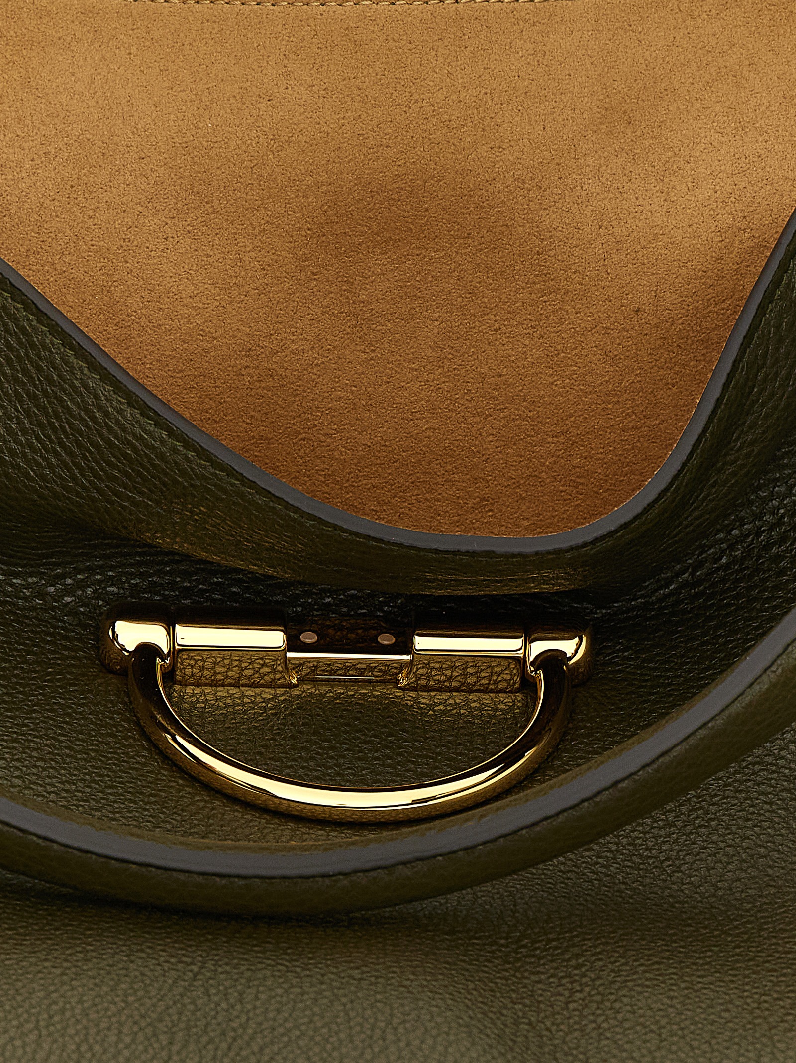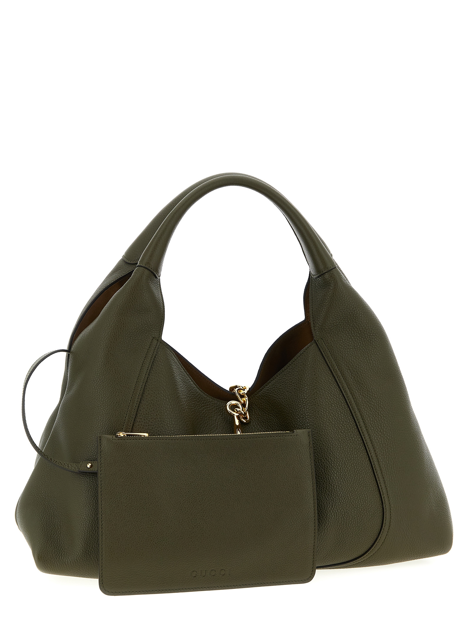 ‘Gucci Softbit’ maxi shoulder bag in hammered leather, double fixed handle, magnetic metal clamp closure, removable clutch.
