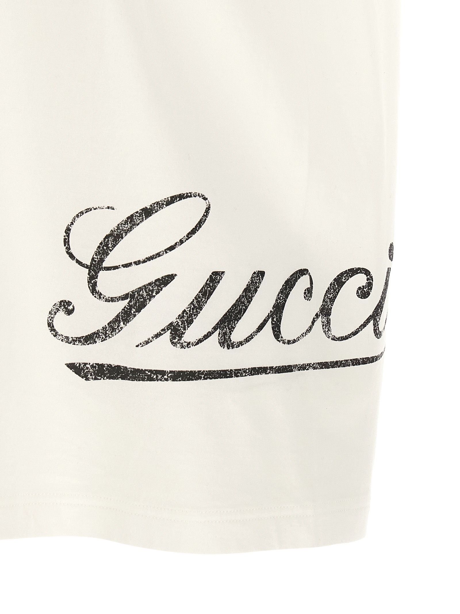 ‘Gucci’ vintage-effect logo print, crew neck, short sleeves with dropped shoulders.