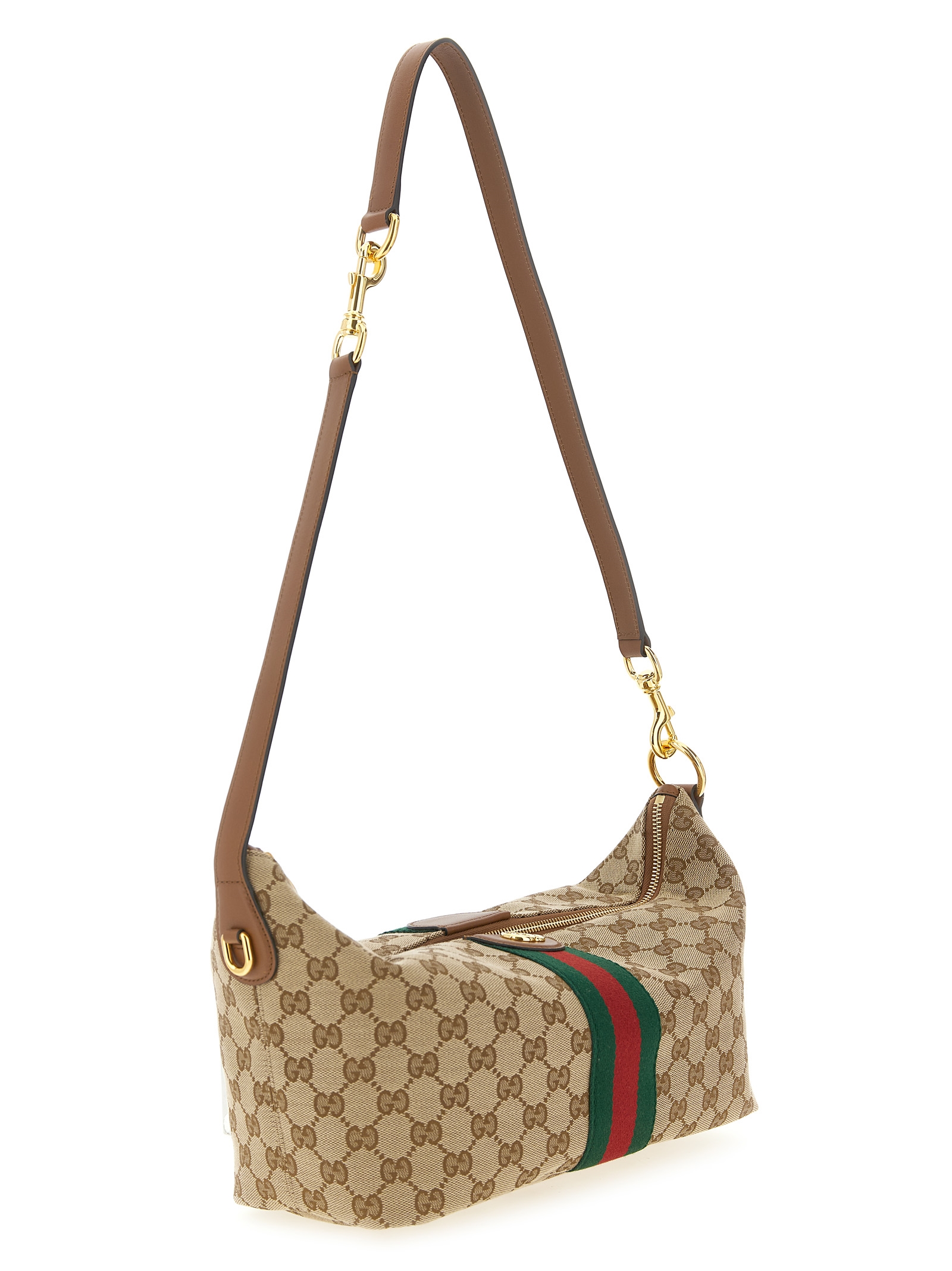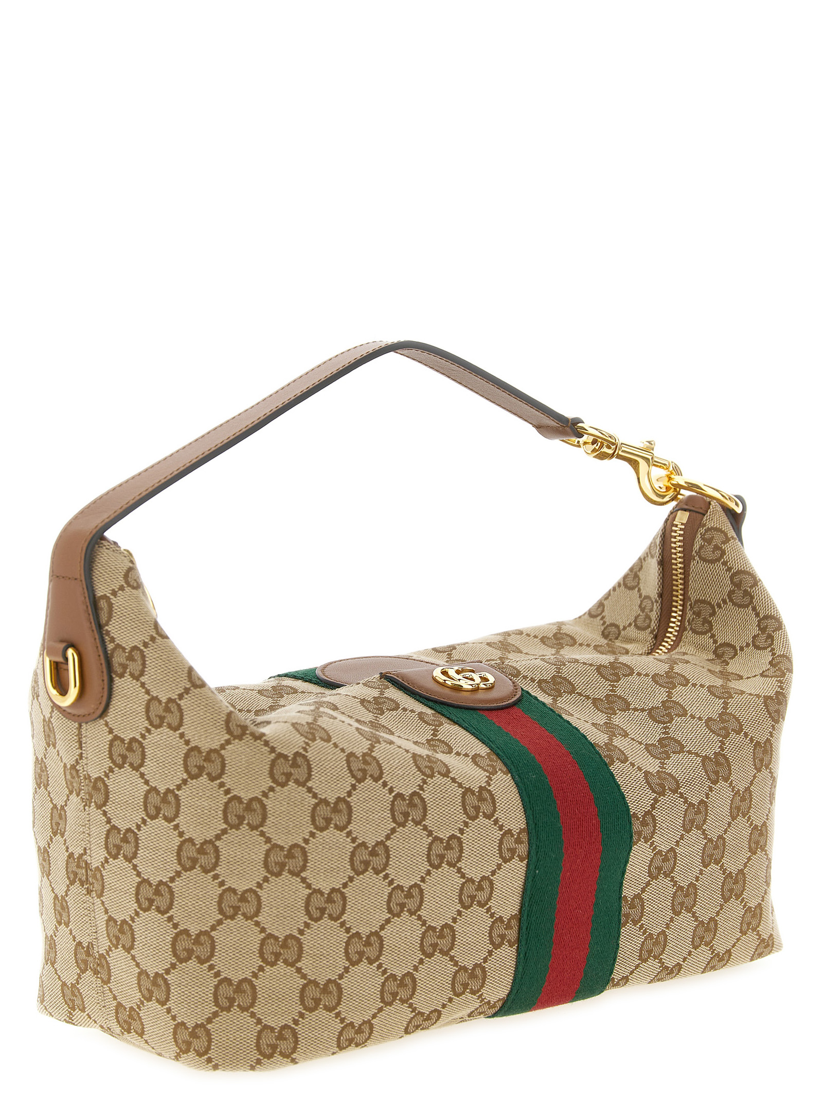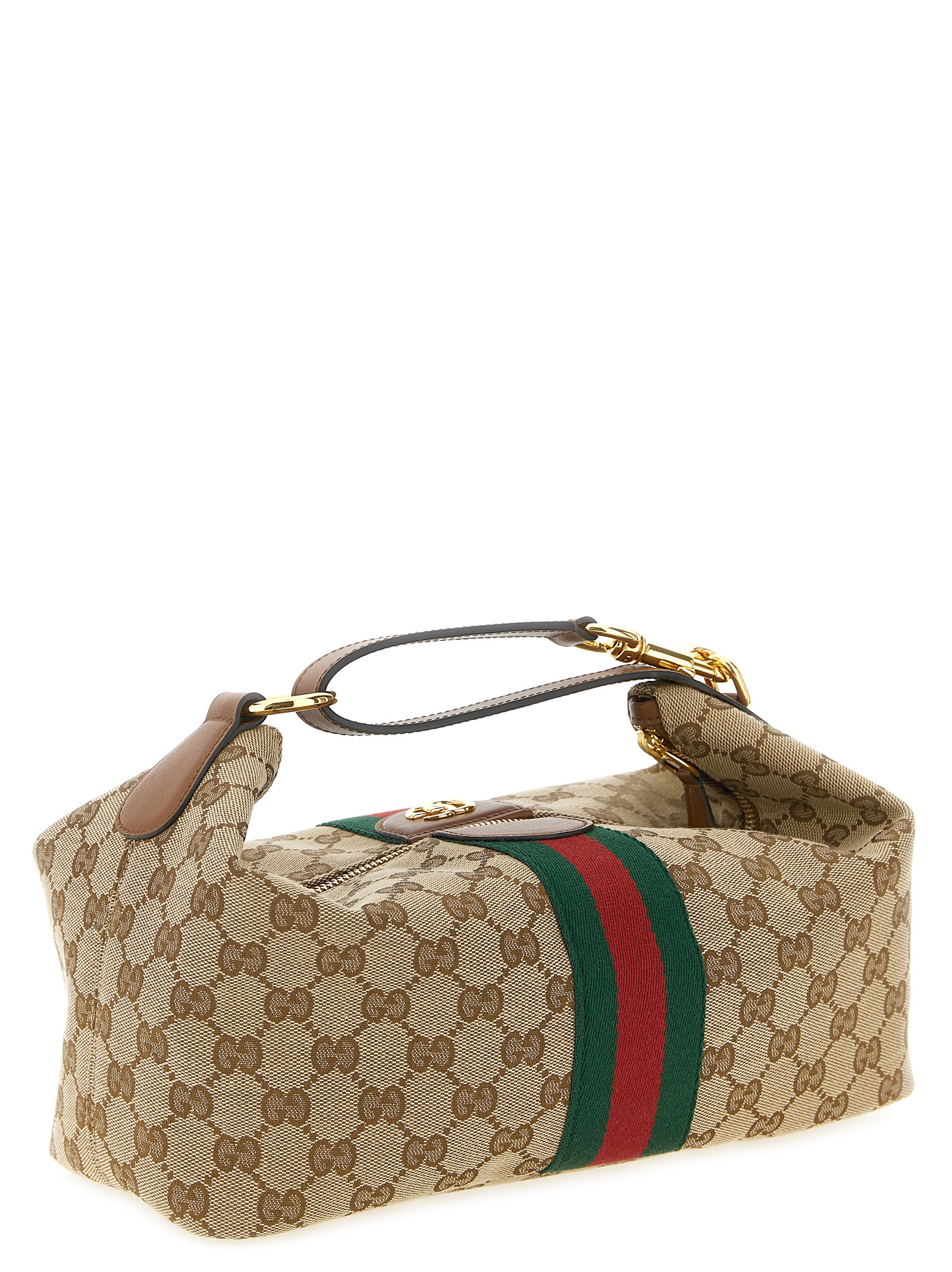 ‘Gucci Vanity’ handbag in GG fabric with leather details, cotton and linen lining, ‘Nastro Web’ with front metal ‘Doppia GG’ detail, top zip closure, double fixed handle, additional shoulder strap insert.