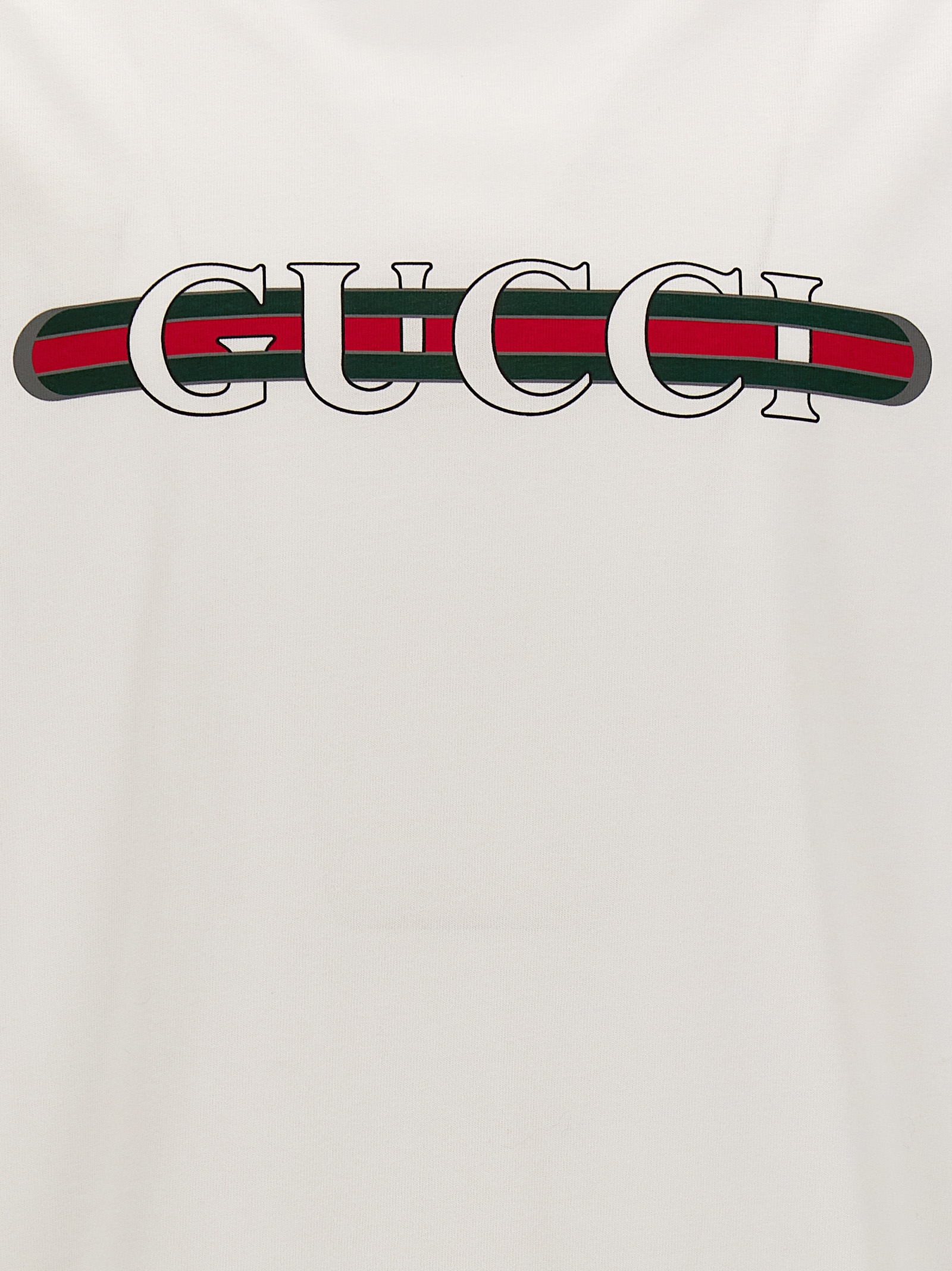 Cotton crew neck T-shirt with front ‘Gucci Web’ logo print and short sleeves.