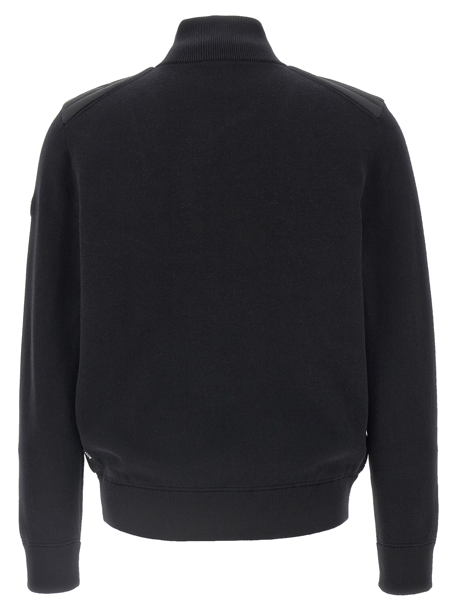 H-Hernesto’ wool and cotton blend jacket with quilted and padded nylon front, high neck, front zip closure, pockets, long cuffed sleeves and leather patch with metal logo appliqué.