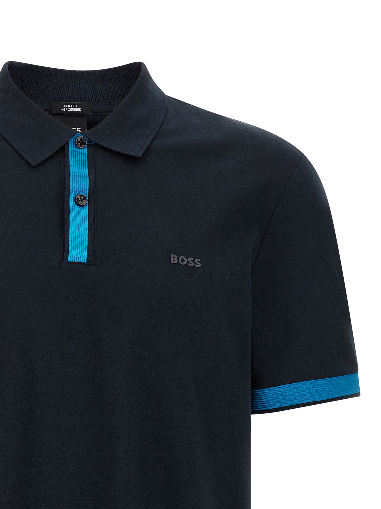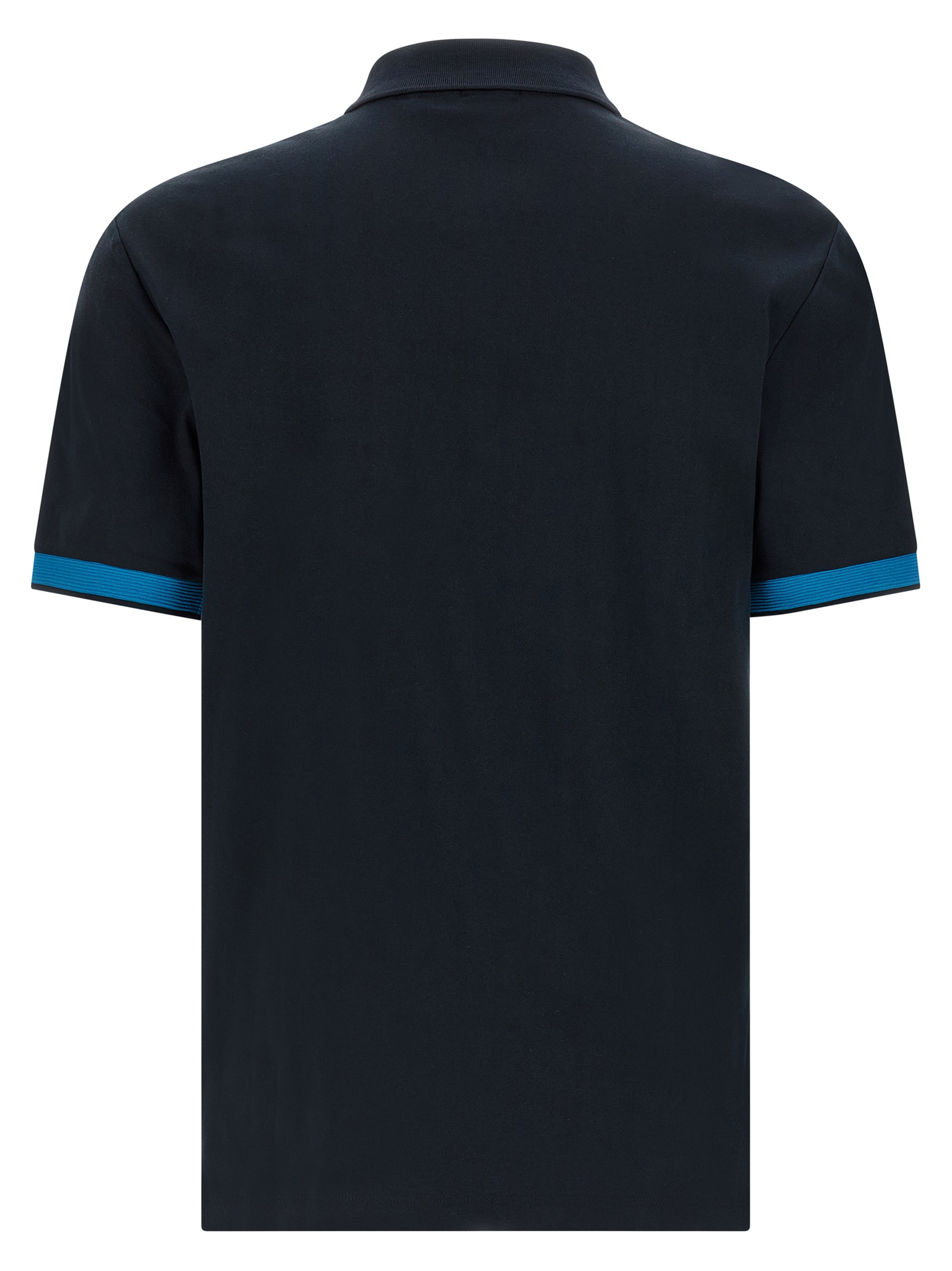 Mercerized cotton H-Phillipson 200 polo shirt with fine contrast workmanship on the closure and cuffs, front logo print, collar and buttons, short sleeves with cuffs, side slits.