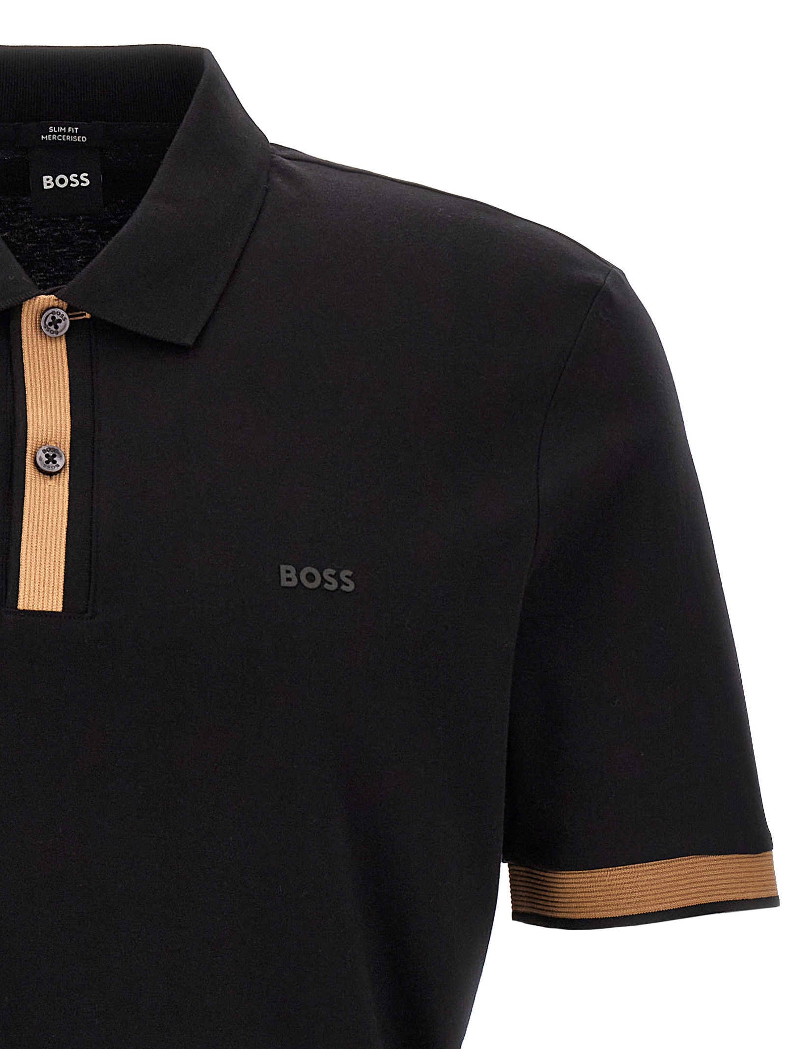 Mercerized cotton H-Phillipson polo shirt, classic collar, two-button closure, embossed logo print, side splits, and short sleeves.