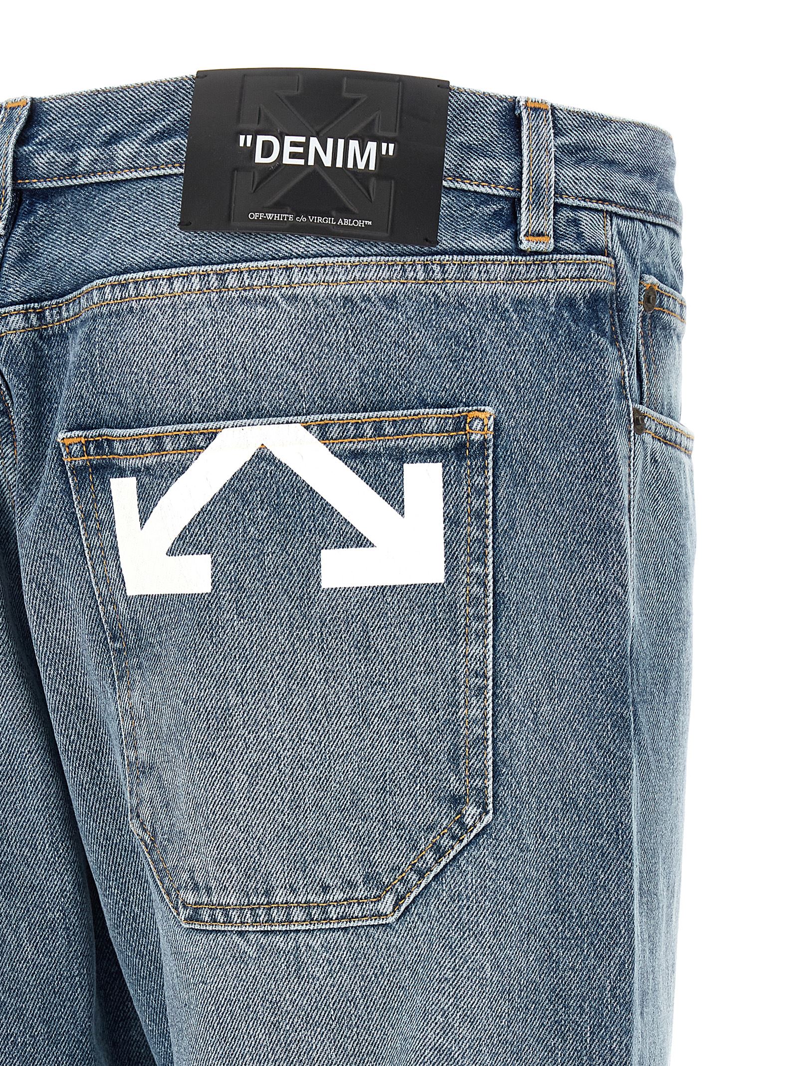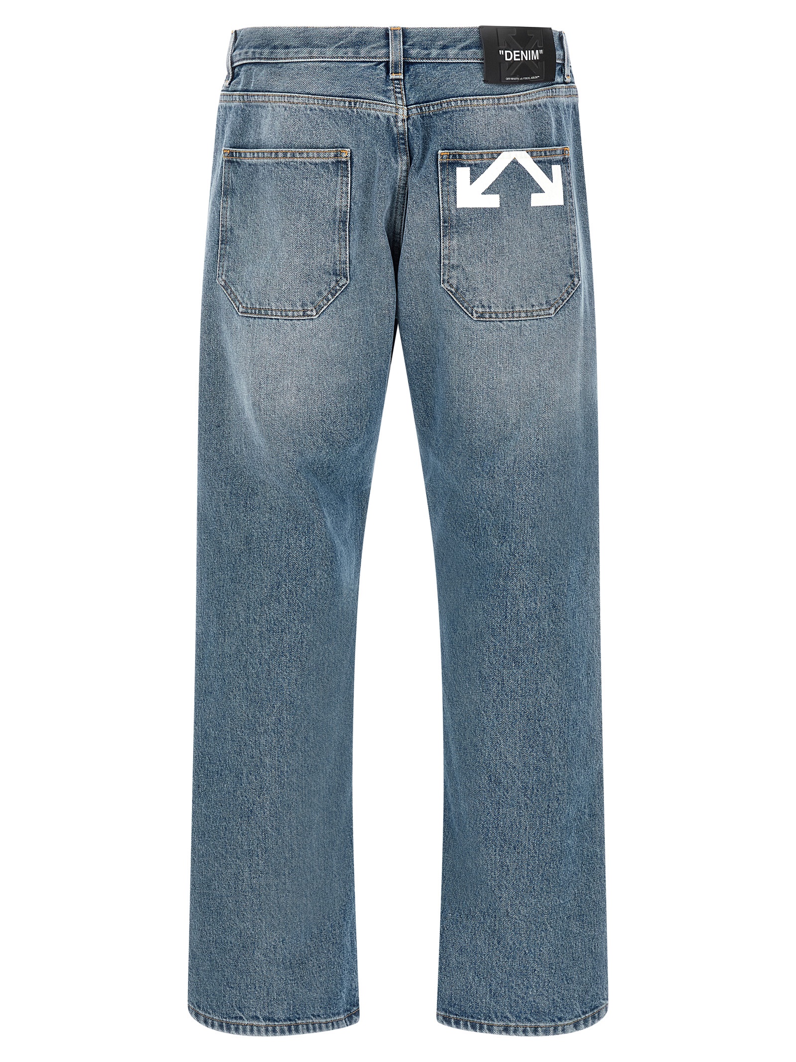 Cotton denim jeans with ‘Half Arrow’ print on the back pocket, 5-pocket model, medium waist. Front button closure, slightly loose fit with straight leg, back logo tag.