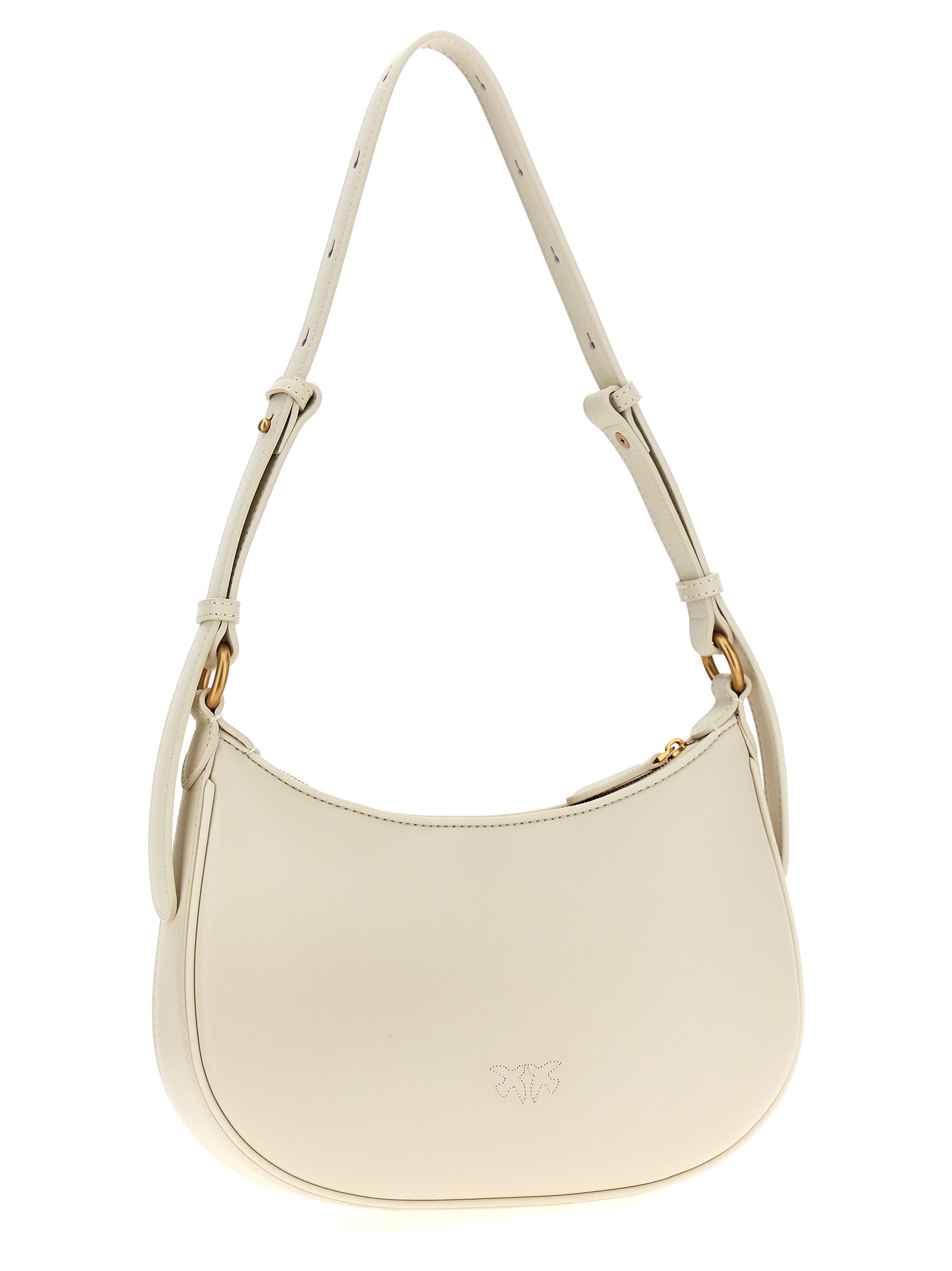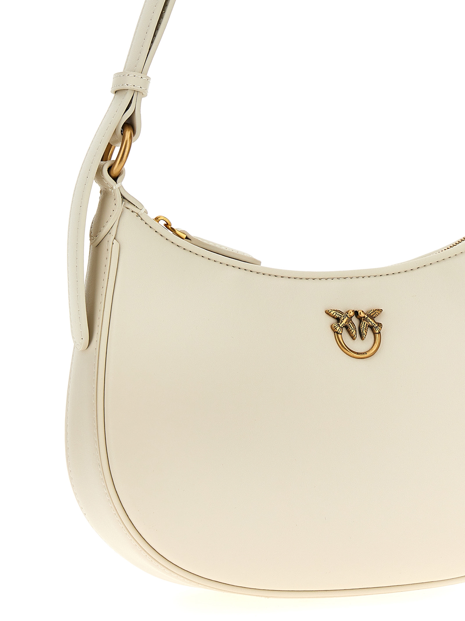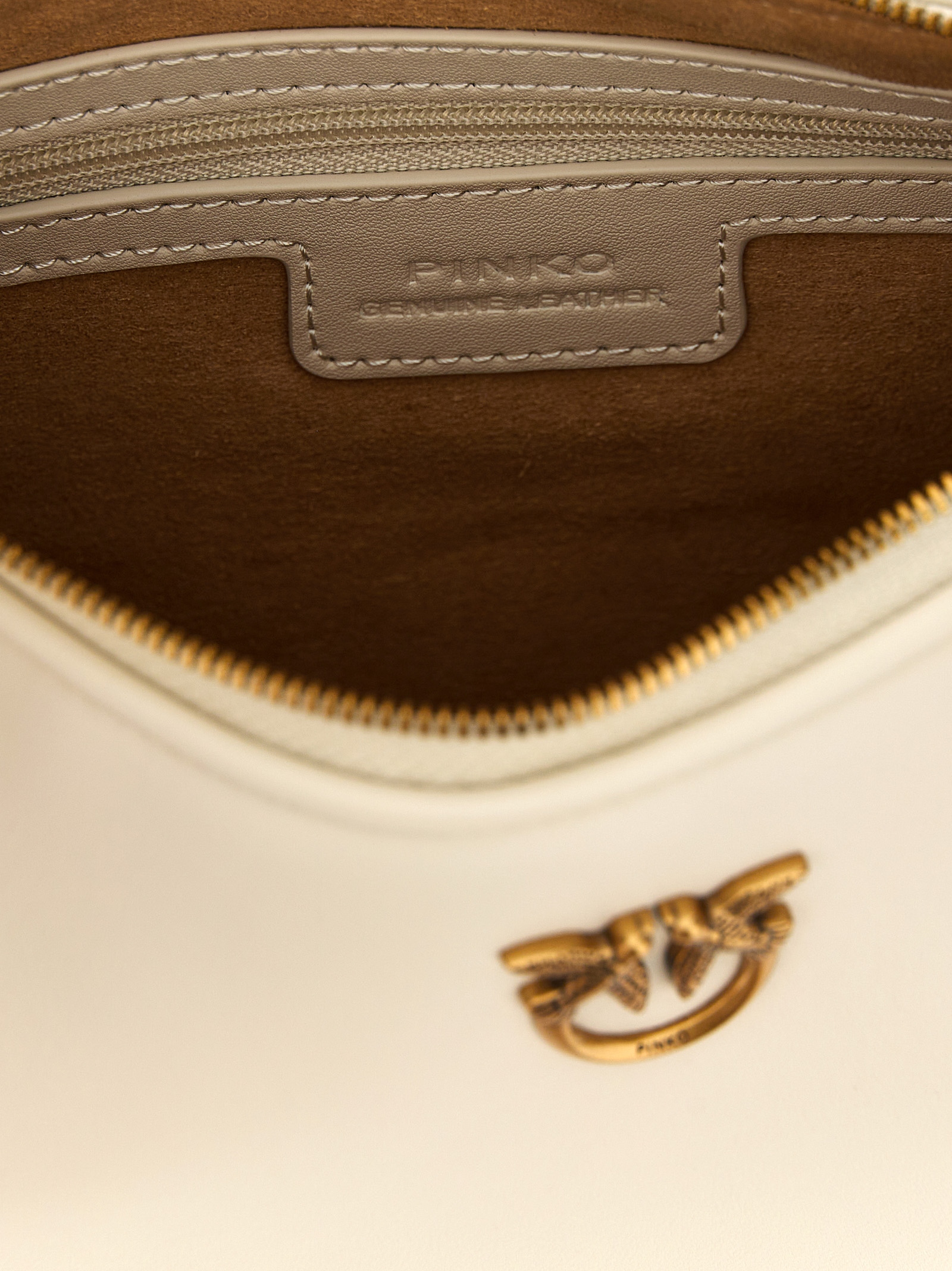 ‘Half Moon Mini’ leather handbag with front logo, zip closure, adjustable handle with removable insert.