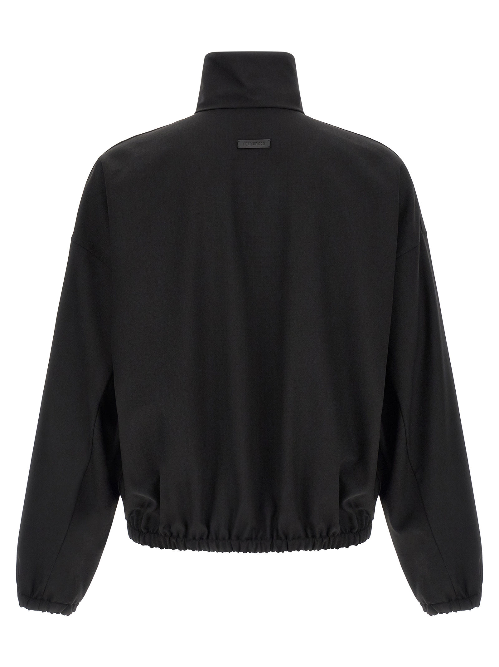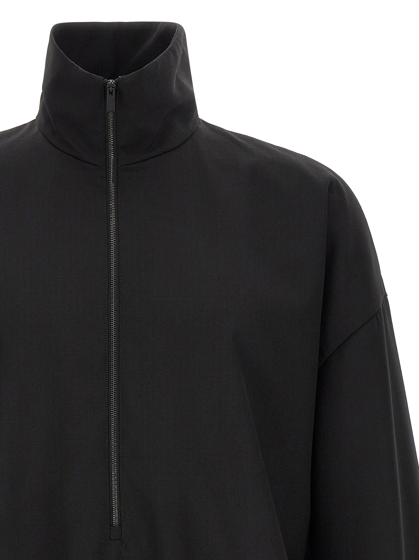 Virgin wool ripstop sweatshirt with high neck, half-zip, long sleeves with elastic cuffs and dropped shoulder, pockets, elastic hem, tone-on-tone leather patch with embossed logo on the back.