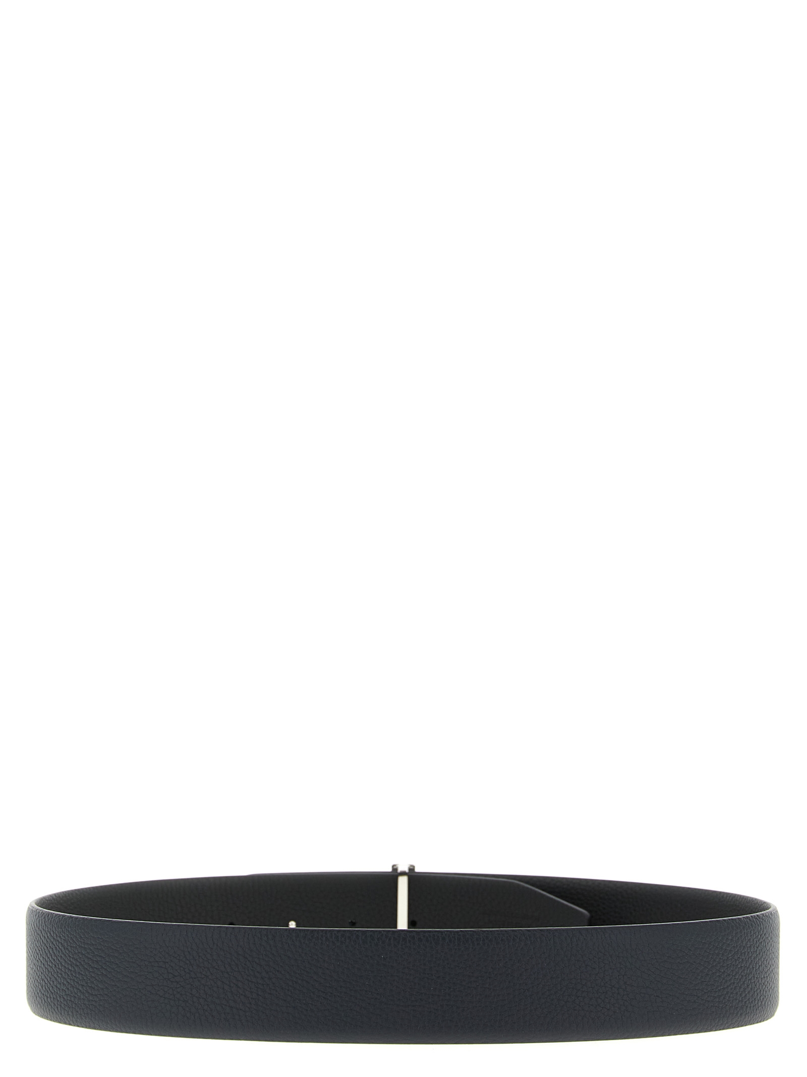 Reversible belt in soft hammered leather, adjustable with silver metal logo buckle.