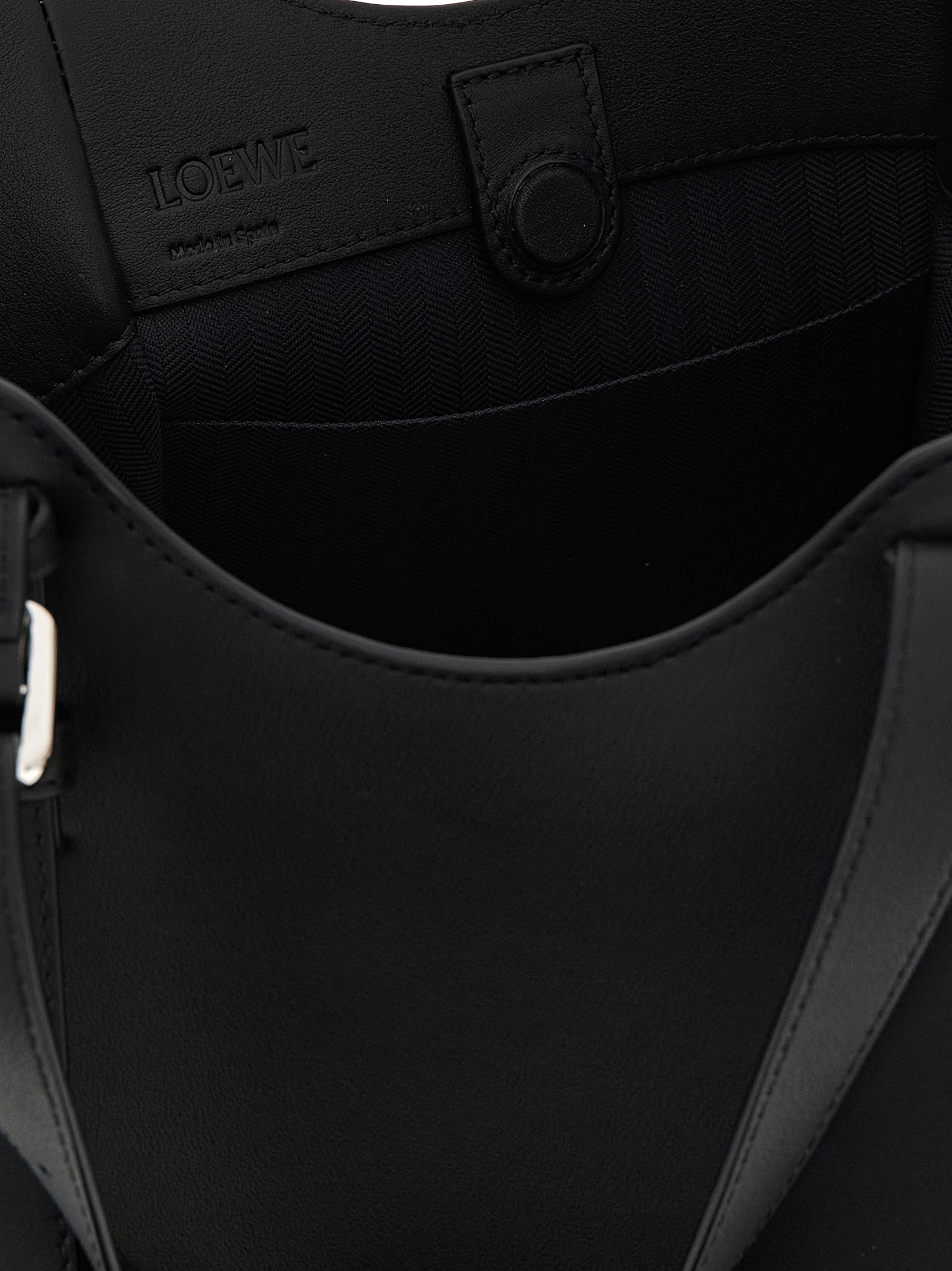Hammock Flip’ classic calf leather shoulder bag with stitching and turn-up construction that allows you to switch from a shopping bag to a hobo bag, embossed logo, zip, double adjustable handle, inner magnetic closure, herringbone cotton canvas lining, adjustable and removable shoulder strap.