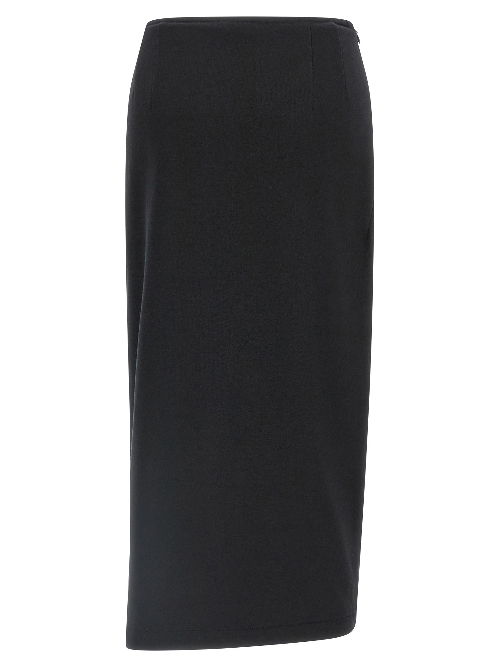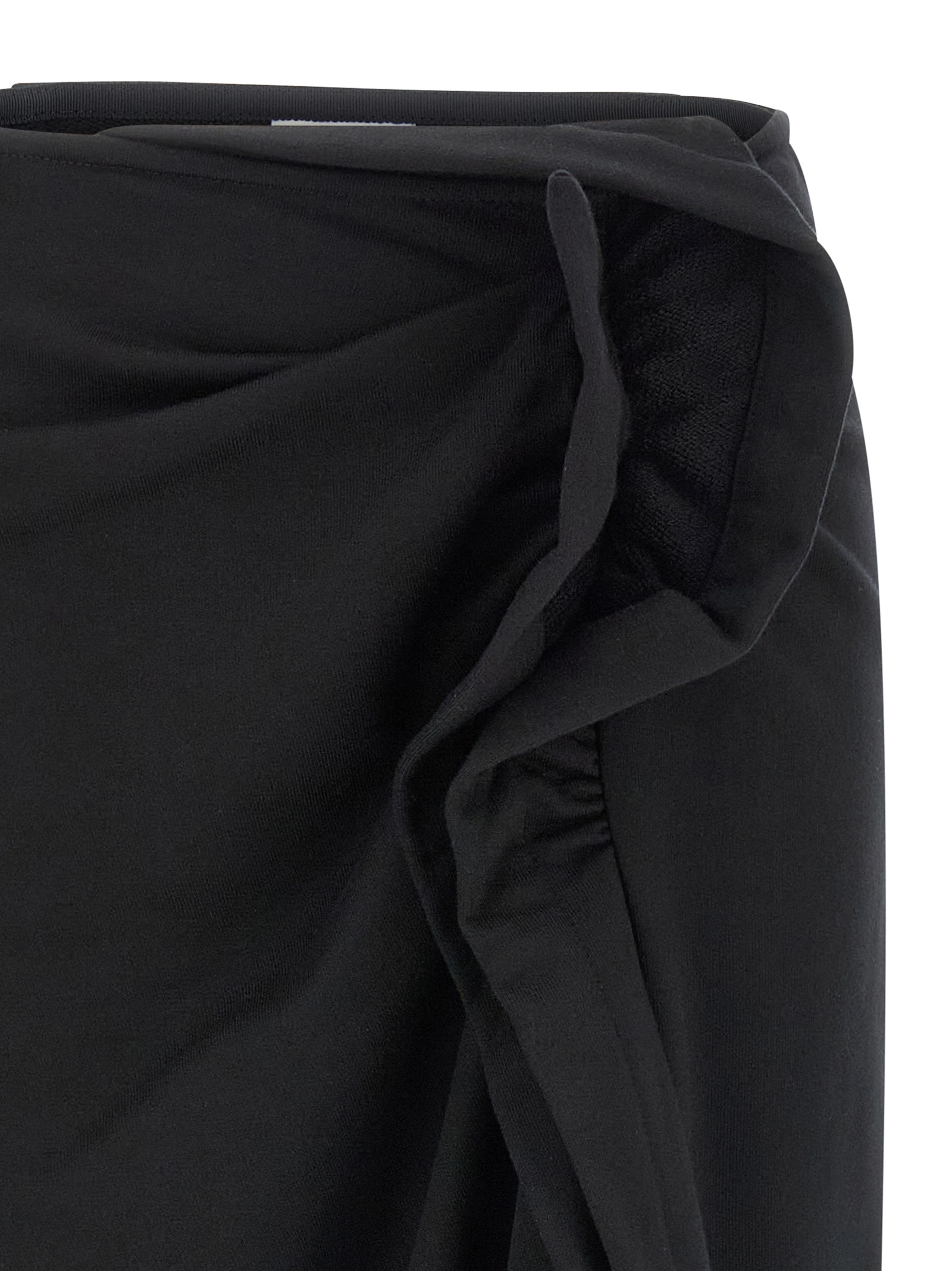 ‘Hanam’ midi skirt in fleece cotton, ruffles with draping and central split, and asymmetrical hem.