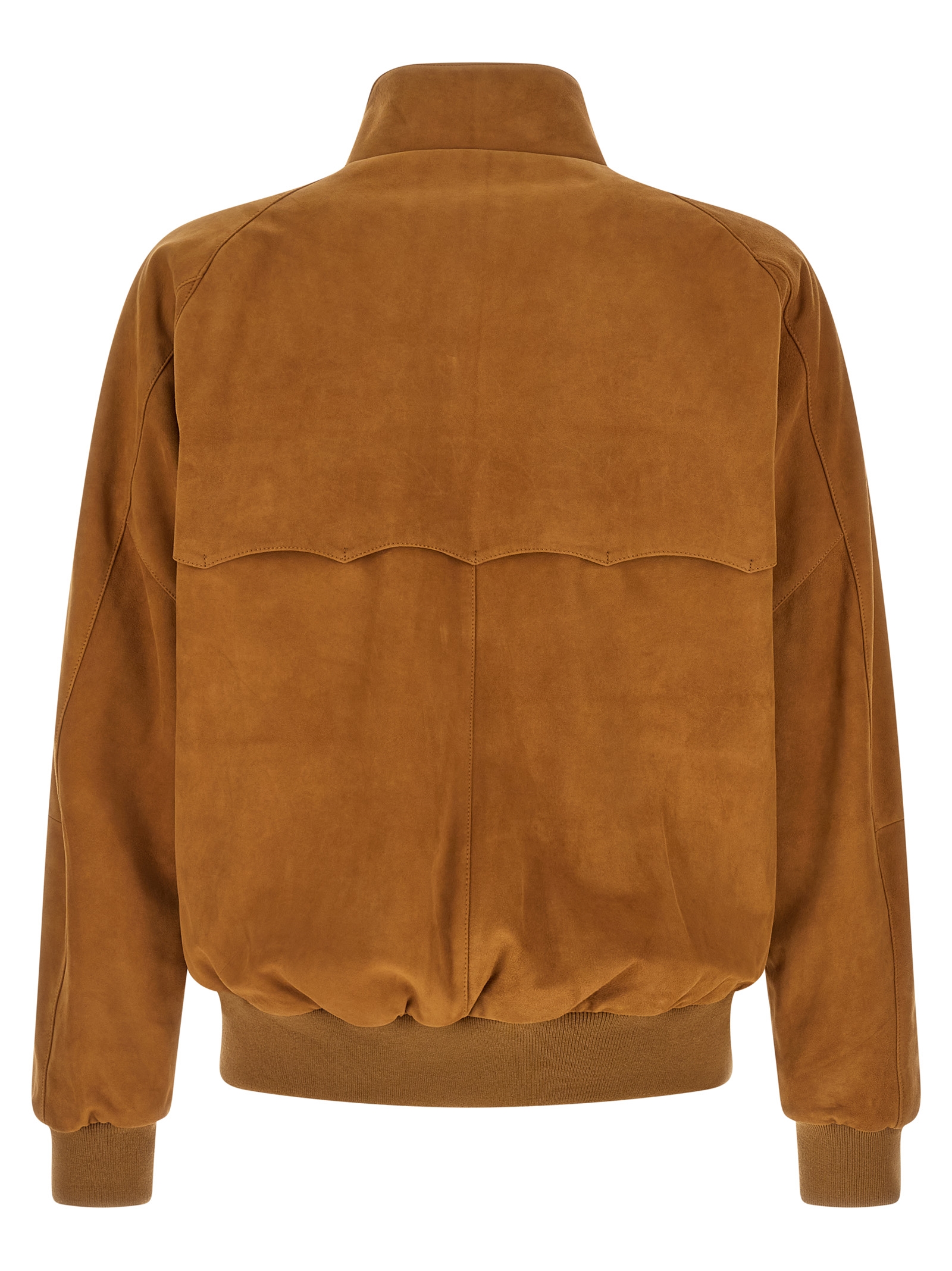 Suede ‘Harrington – G9’ jacket with breathable Coolmax® fabric lining with iconic Fraser Tartan pattern, two-button standing collar, umbrella shoulder strap, front zip closure, long raglan sleeves with cuffs, pockets, and headband on the hem.