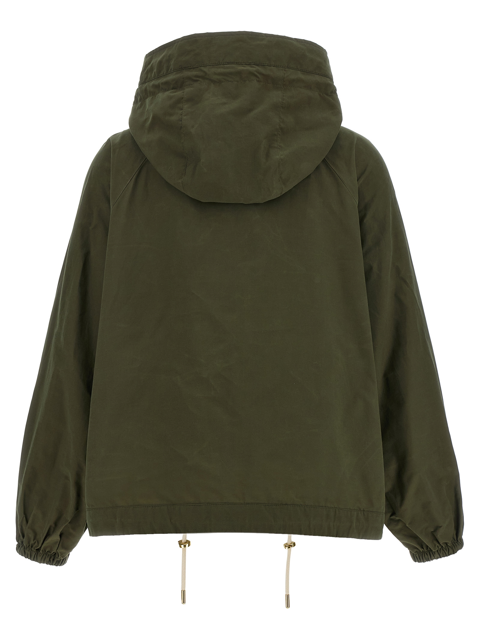 ‘Hawkridge’ waterproof cotton blend rain jacket with dry to the touch, flared silhouette, adjustable tartan-lined hood, high neck, front zip and snap button closure, welt pockets with contrast logo embroidery, long raglan sleeves with elastic cuffs, drawstring on the hem, unlined.