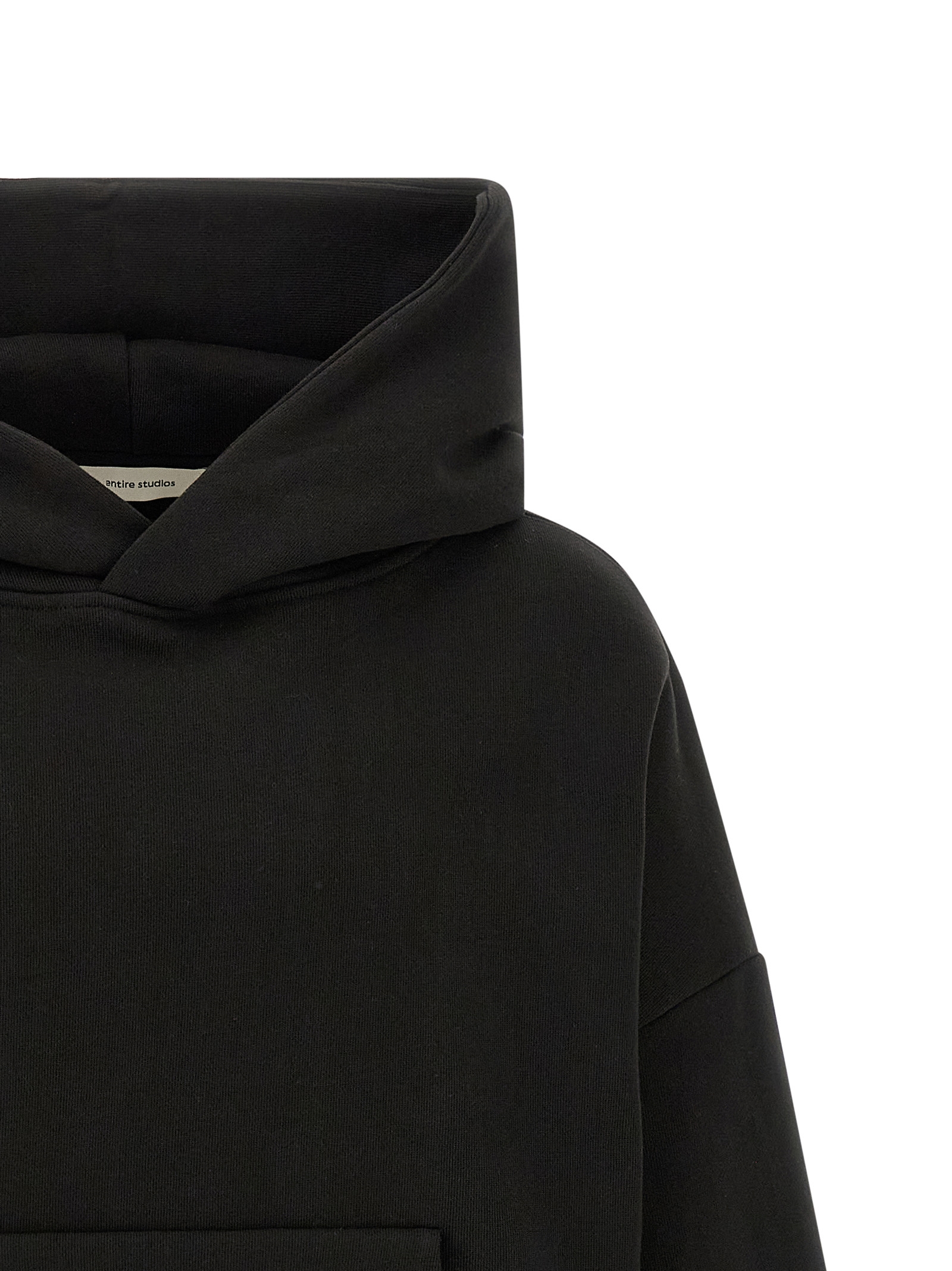 510 gsm cotton ‘Heavy’ hoodie with fleece lining, kangaroo pocket, long sleeves with cuffs and dropped shoulders, and headband.
