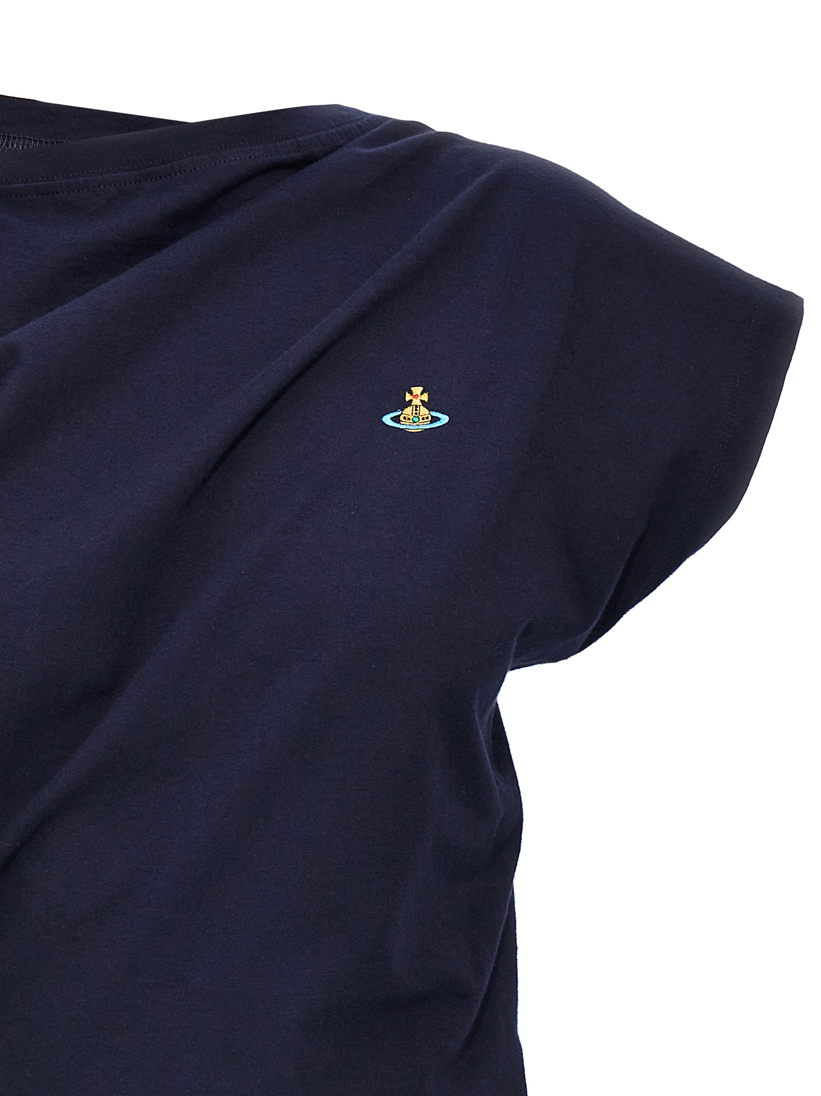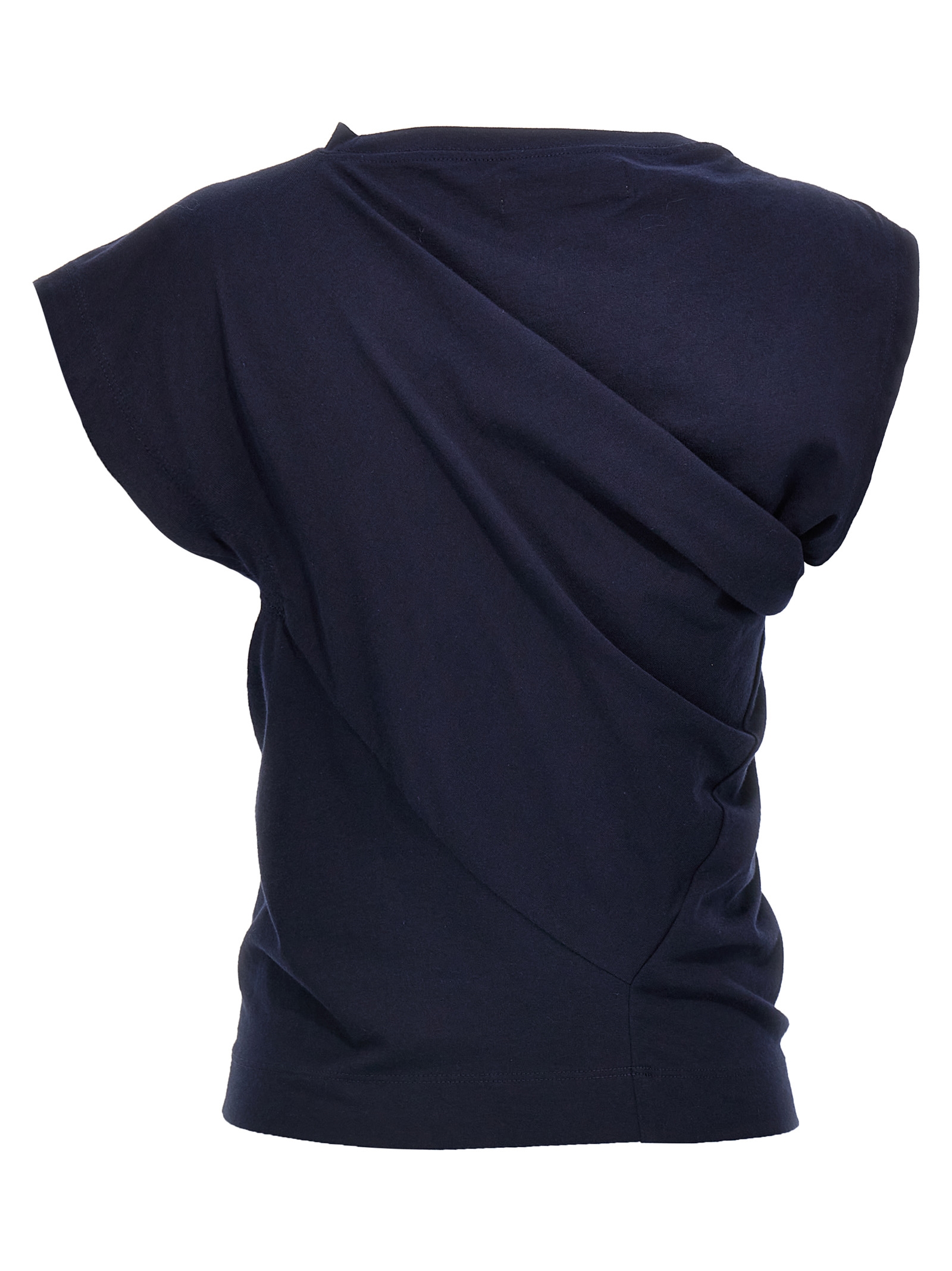 ‘Hebo’ cotton top with front Orb logo embroidery, asymmetrical sleeves, crinkled details on the sides, back pin tucks.