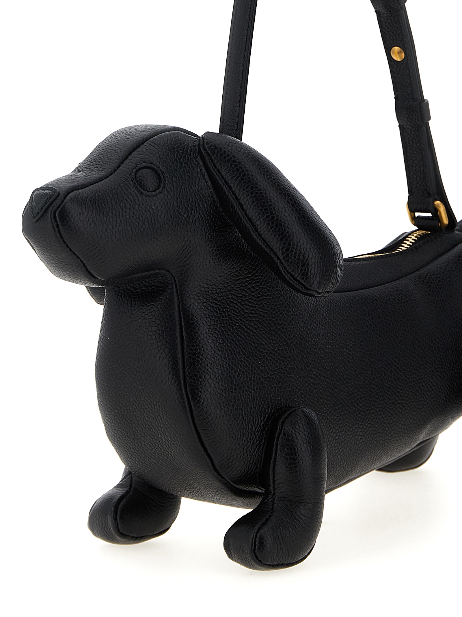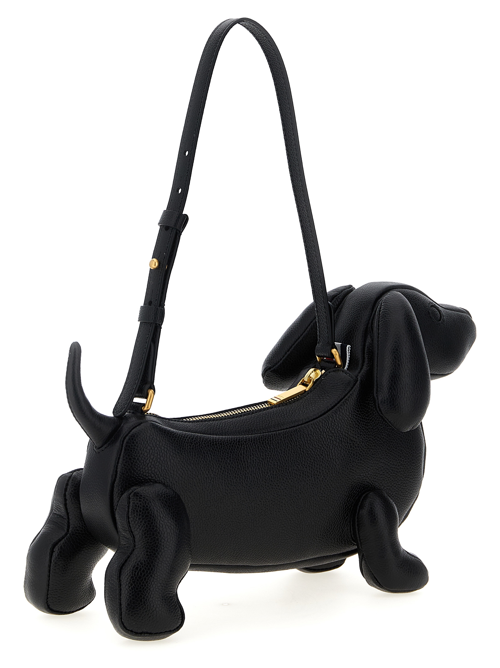 ‘Hector Baguette’ shoulder bag in grainy leather, dog-shaped model, tricolor striped cotton lining, top zip closure, adjustable handle.