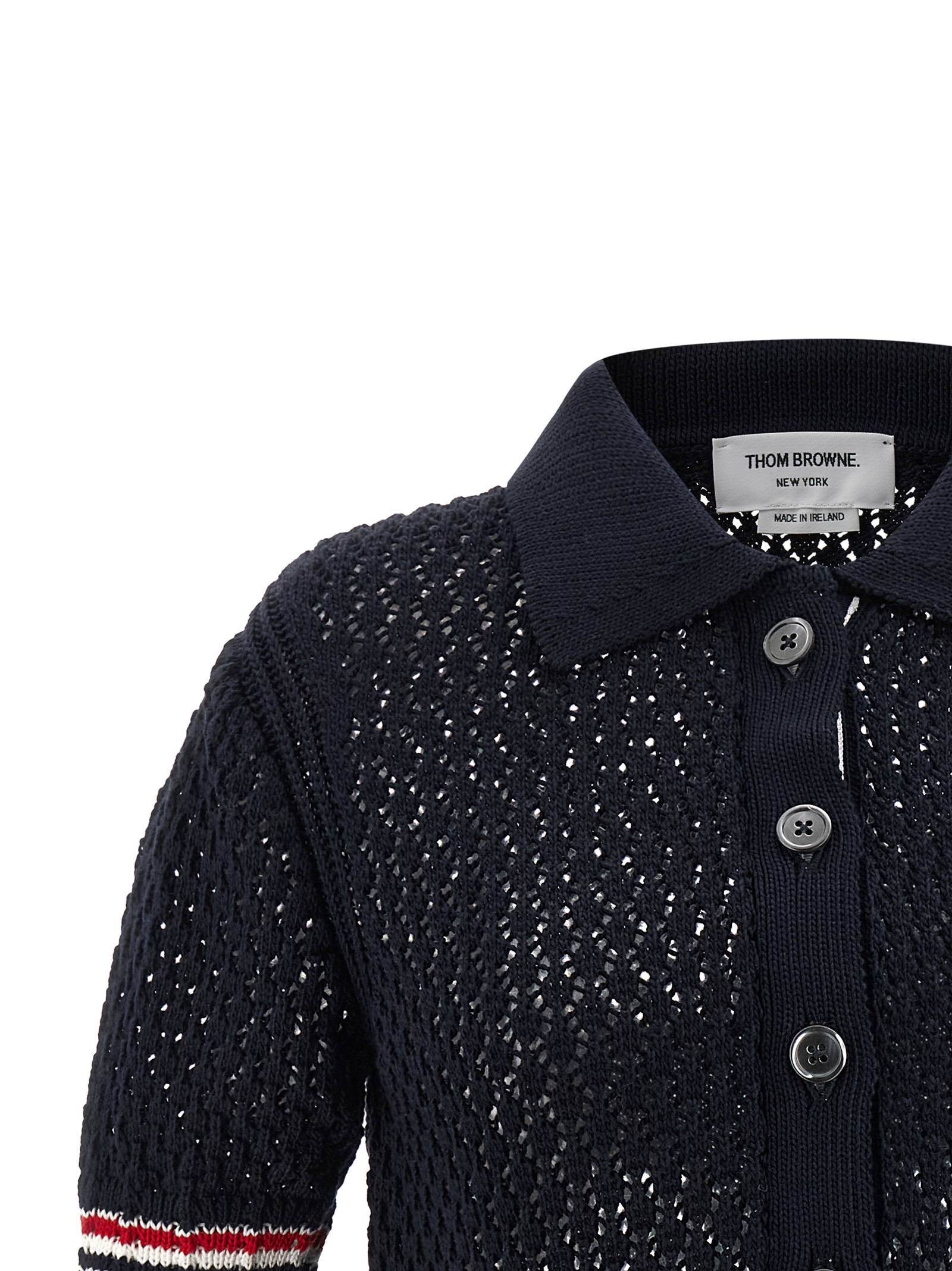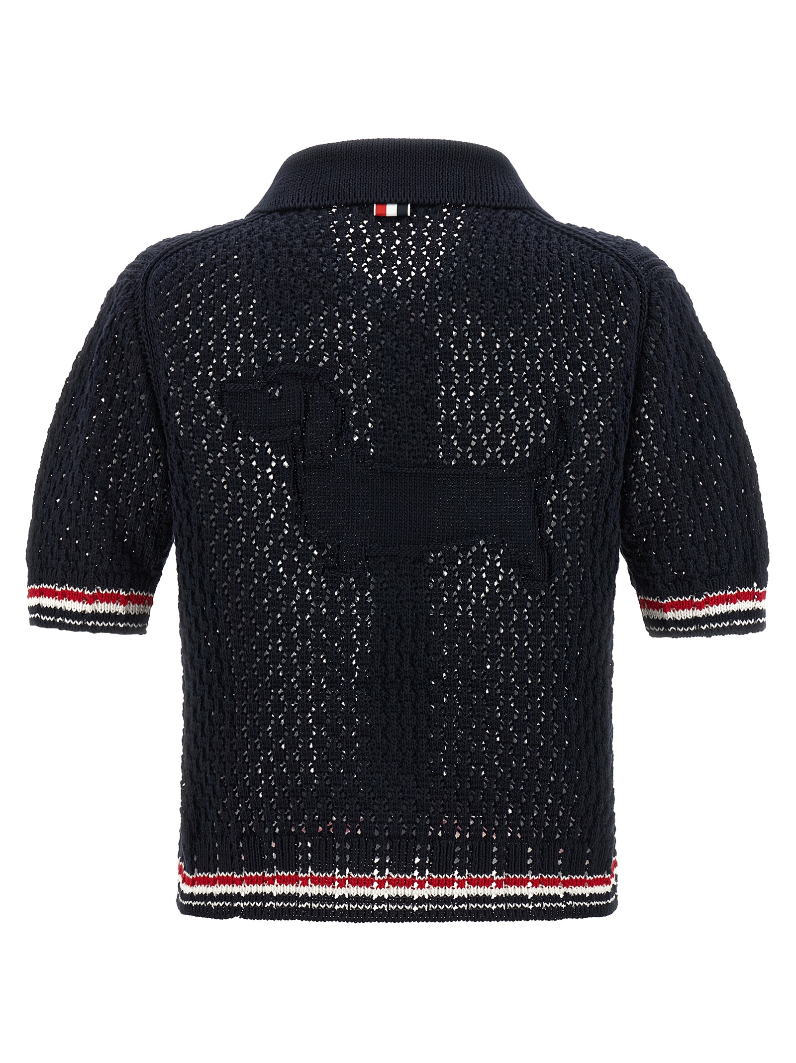 Polo shirt in openwork ‘Hector pointelle’ cotton knit with shirt collar, front button closure and ‘RWB’ grosgrain, short sleeves with ‘RWB’ intarsia on the edges.