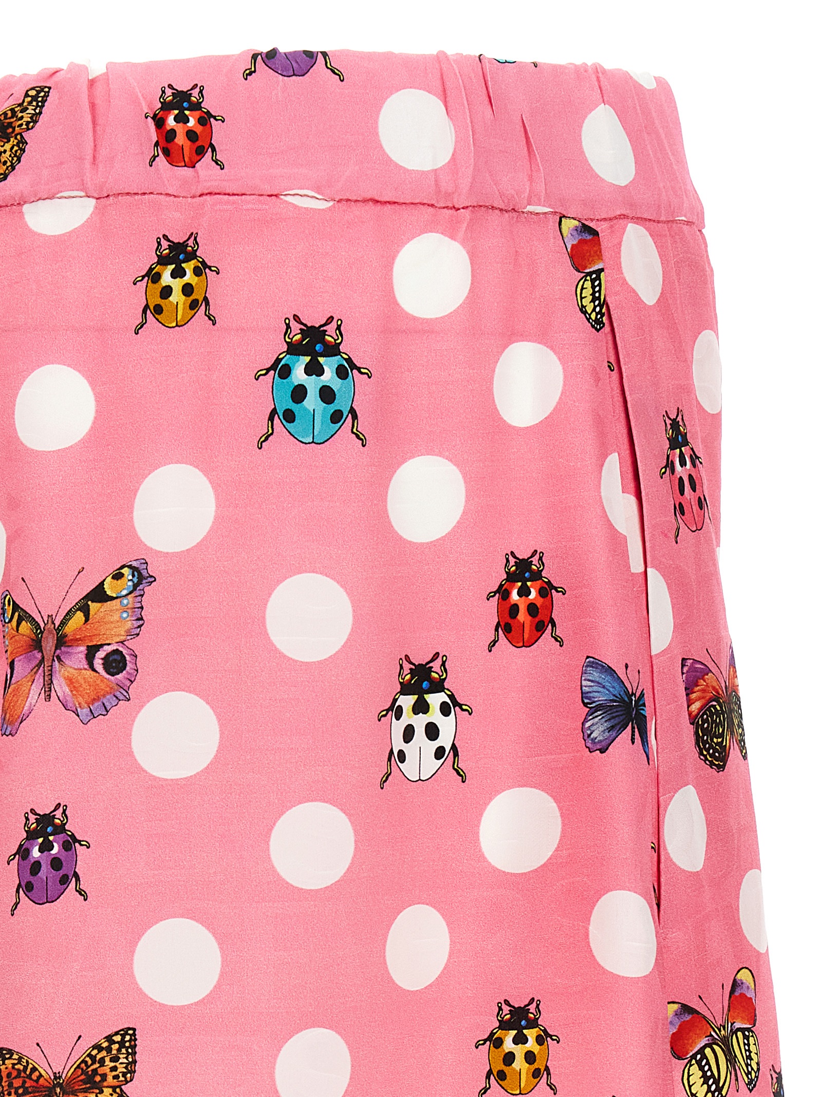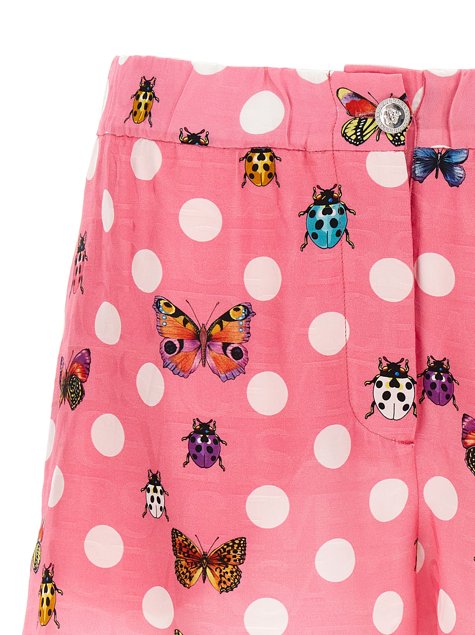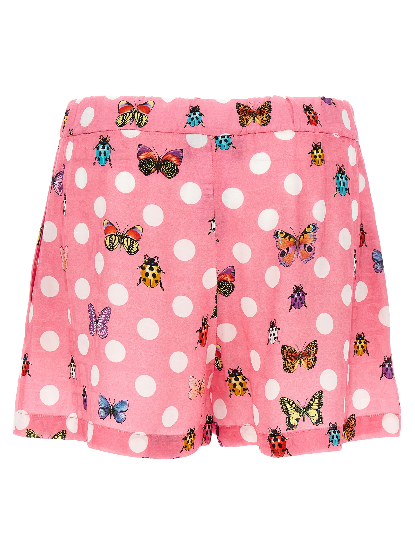 The Holiday capsule shorts crafted in a silk blend twill with ‘Heritage Butterflies & Ladybugs Polka Dot’ print, elastic waistband, pockets.