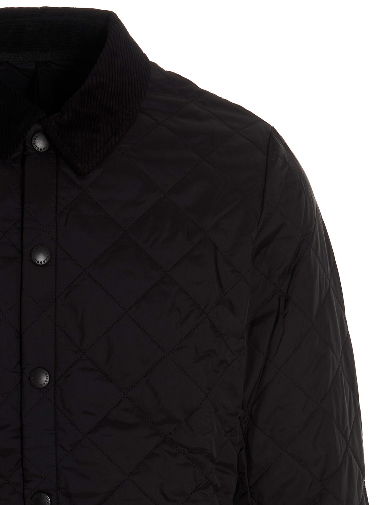 ‘Heritage Liddesdale’ quilted nylon jacket with snap button closure, corduroy collar, pockets, logo embroidery, slim fit.