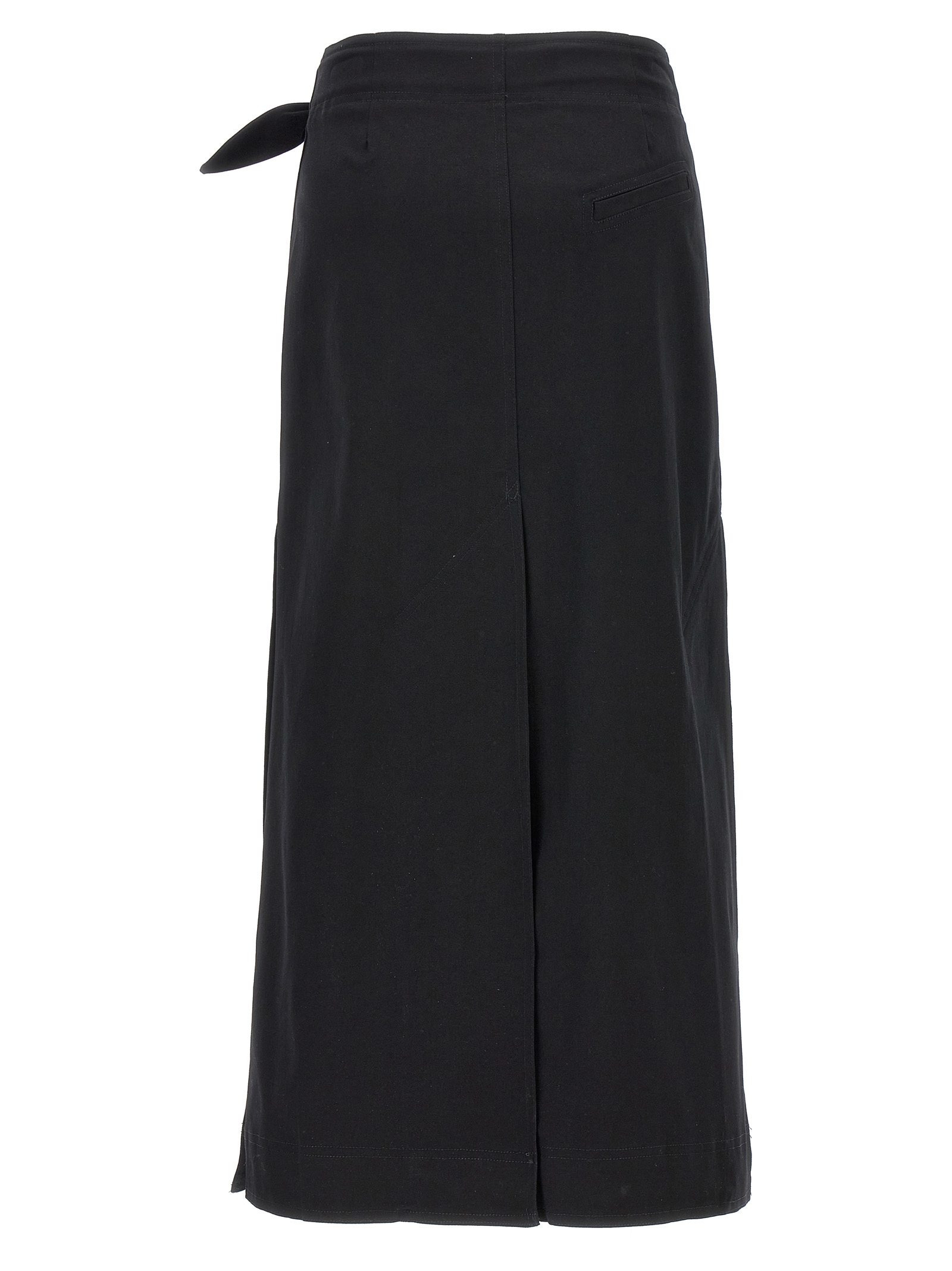 ‘Herringbone Canvas’ cotton skirt with drawstring closure and knot at the waist, side slits.