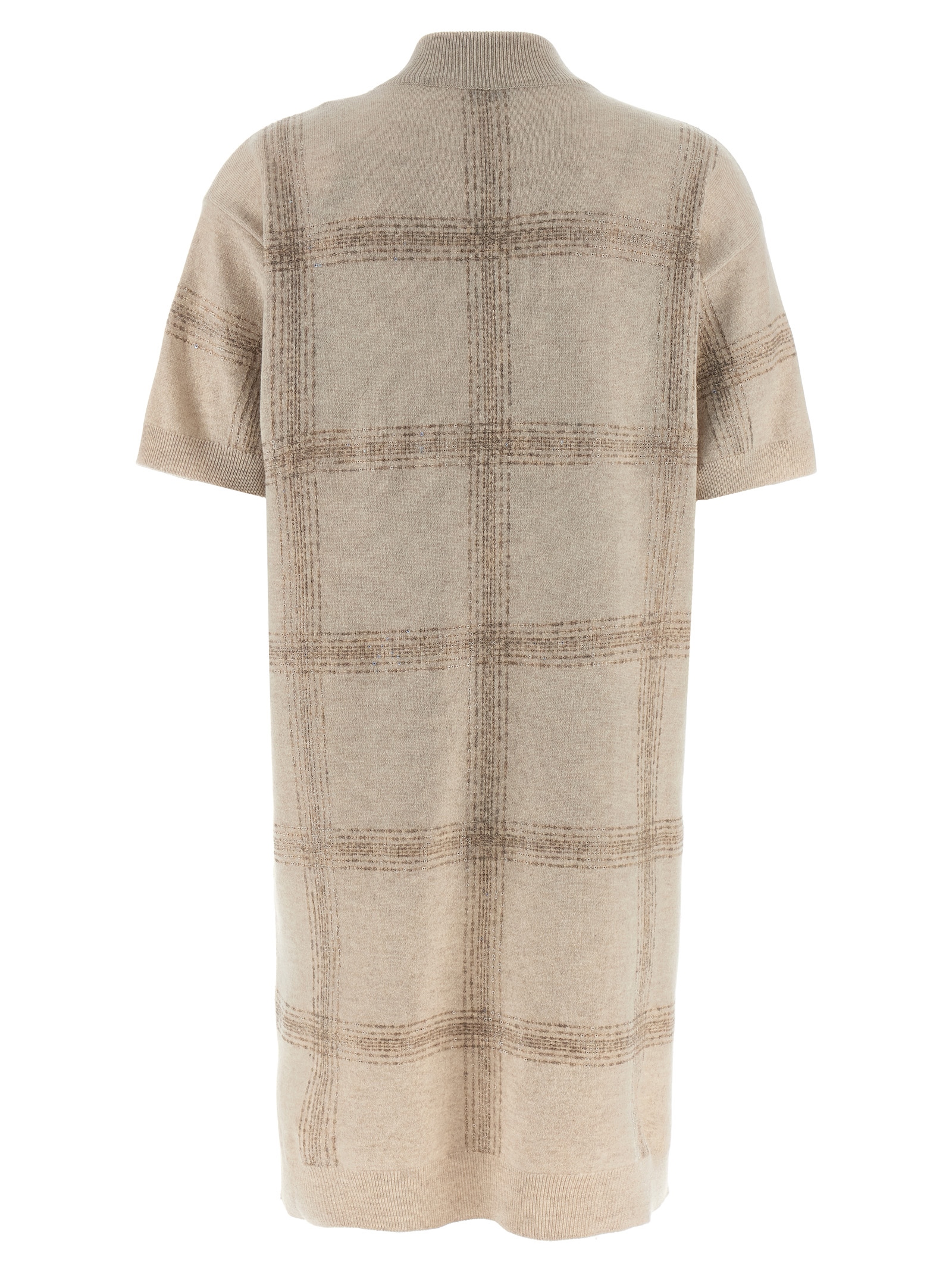 Midi dress in virgin wool, cashmere and silk blend with geometric sequins, high neck, long cuffed sleeves.