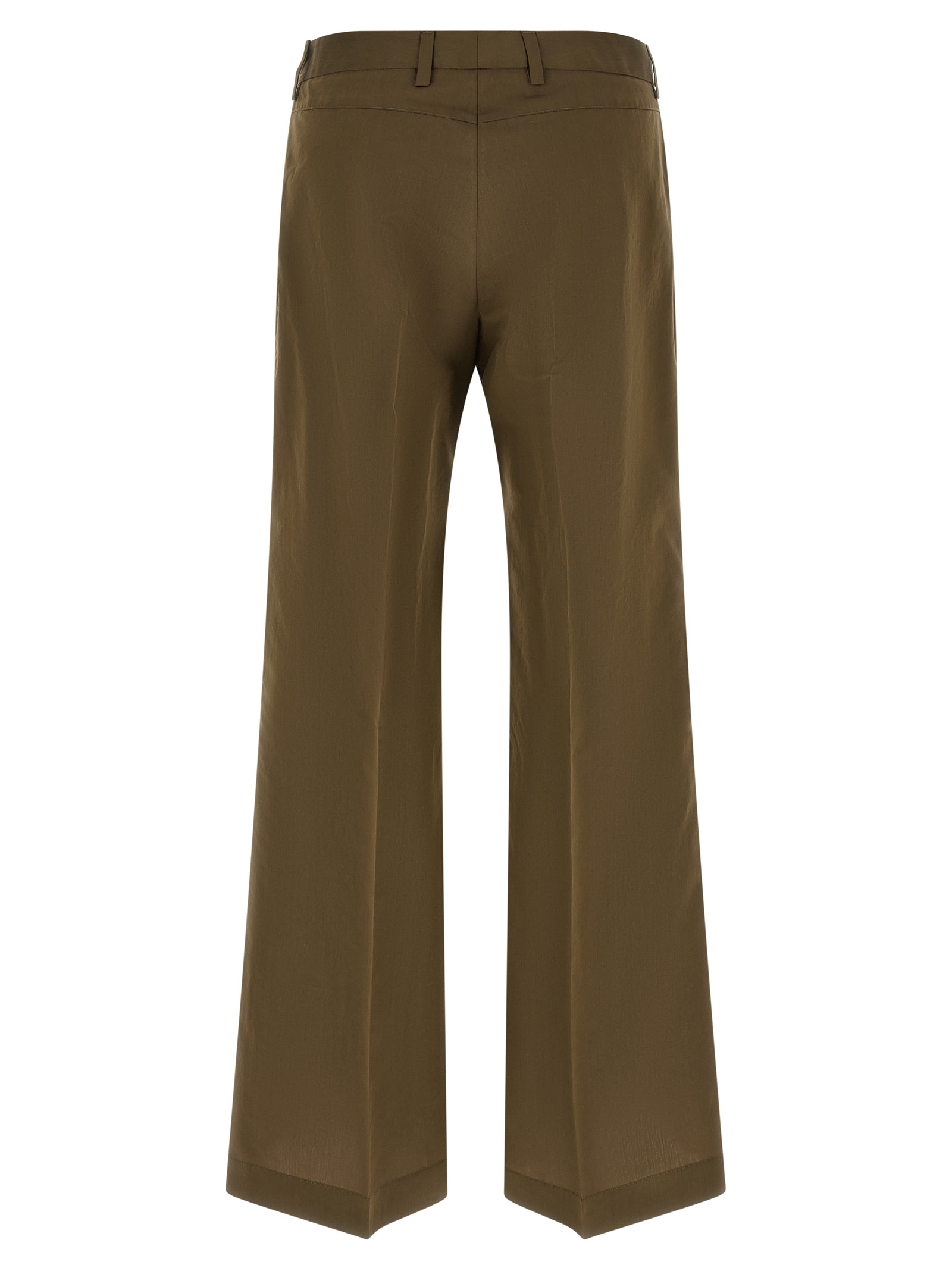 ‘Hippie’ pants in cotton and silk blend poplin with palazzo style with wide flared leg, stretched pleat, zip and front button closure, American pockets.