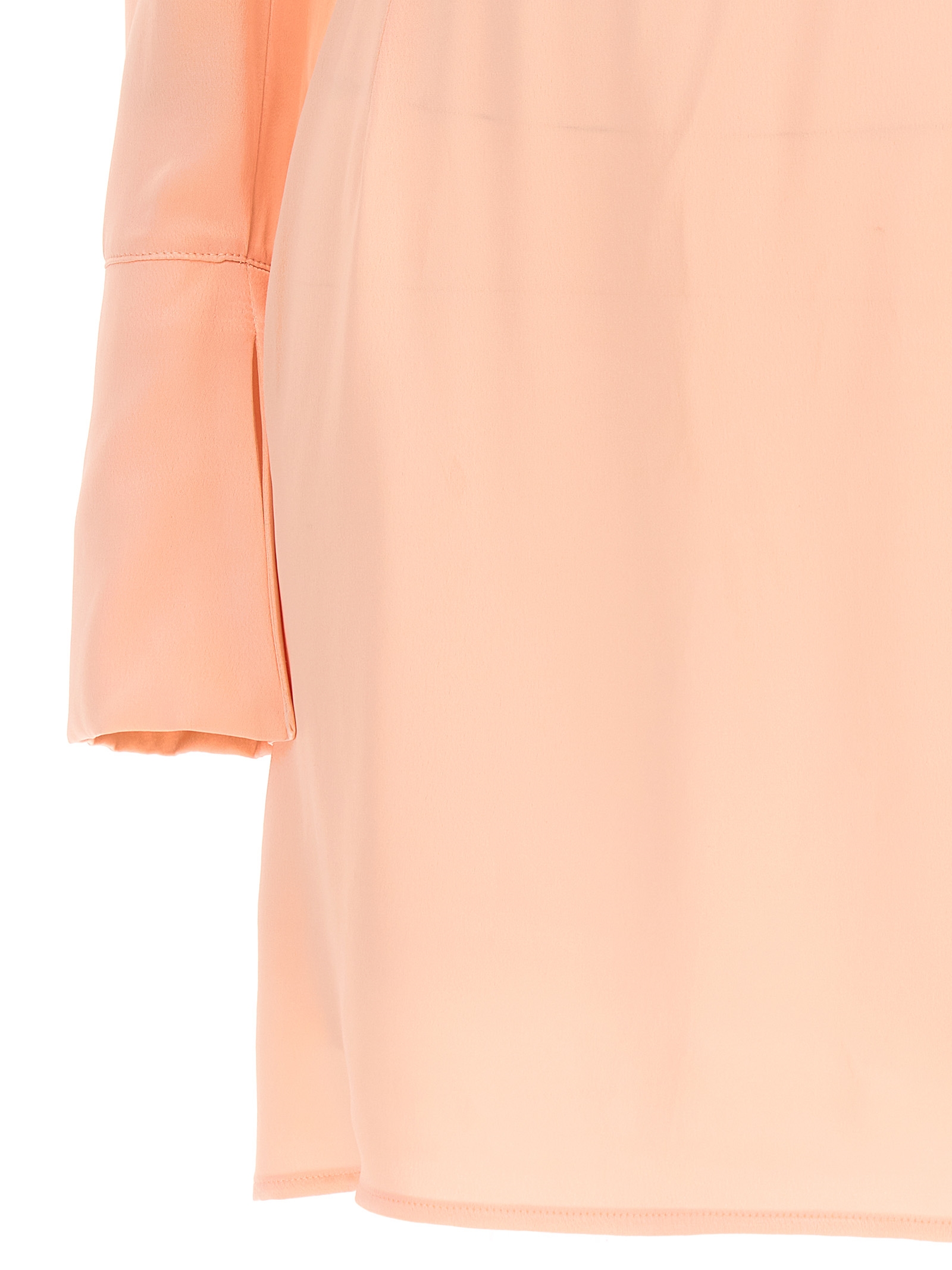 Hope’ satin short dress with draped detail at the waist, crewneck, long cuffed sleeves and splits and a back zip closure.