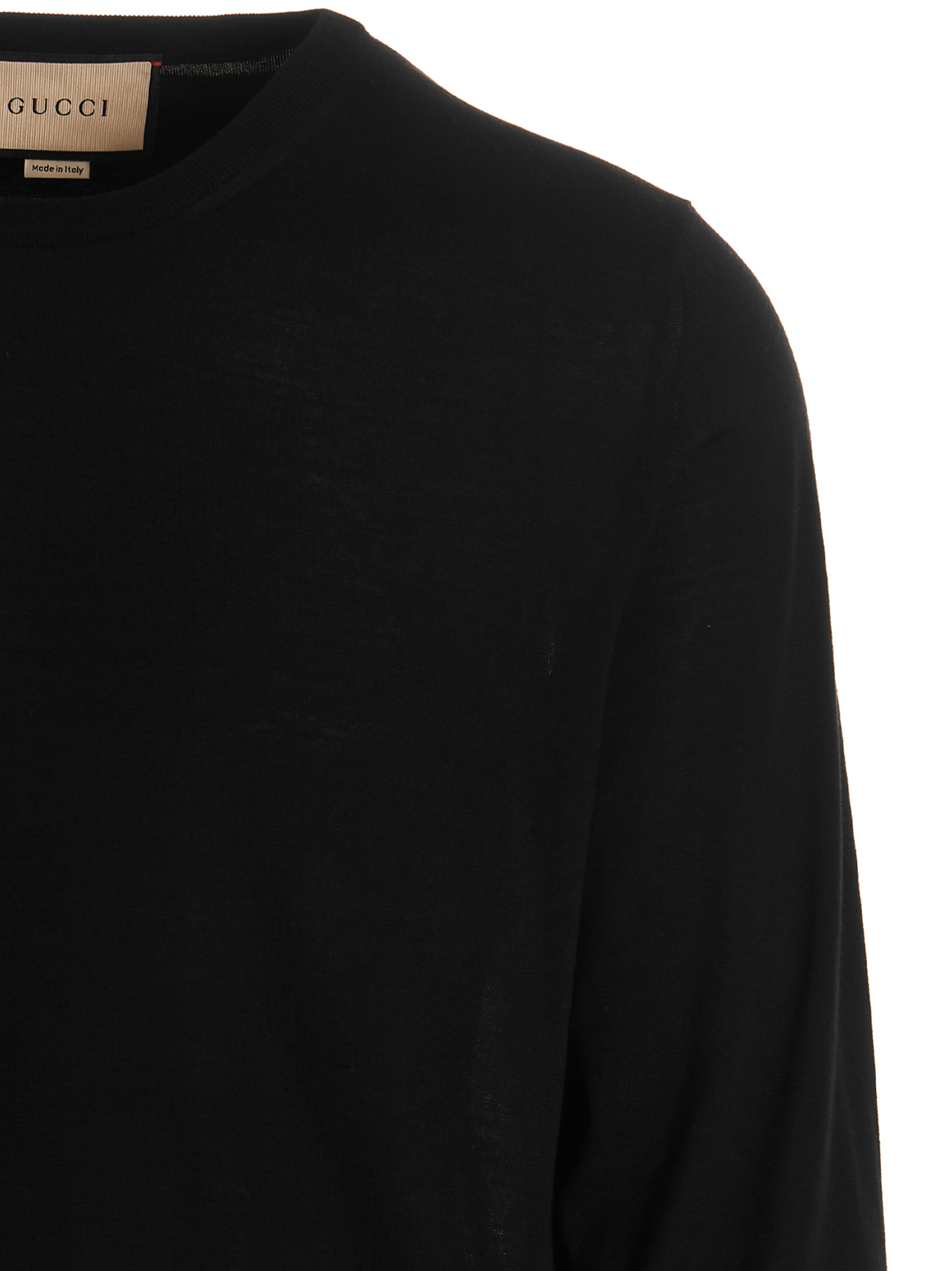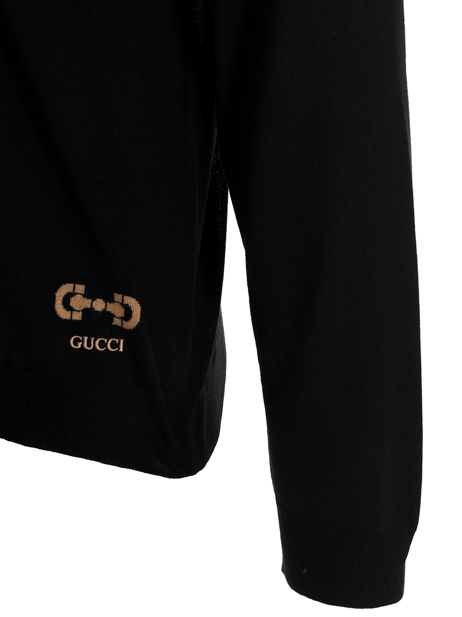 Wool sweater with jacquard ‘Horsebit’ logo, a crewneck, and long cuffed sleeves.