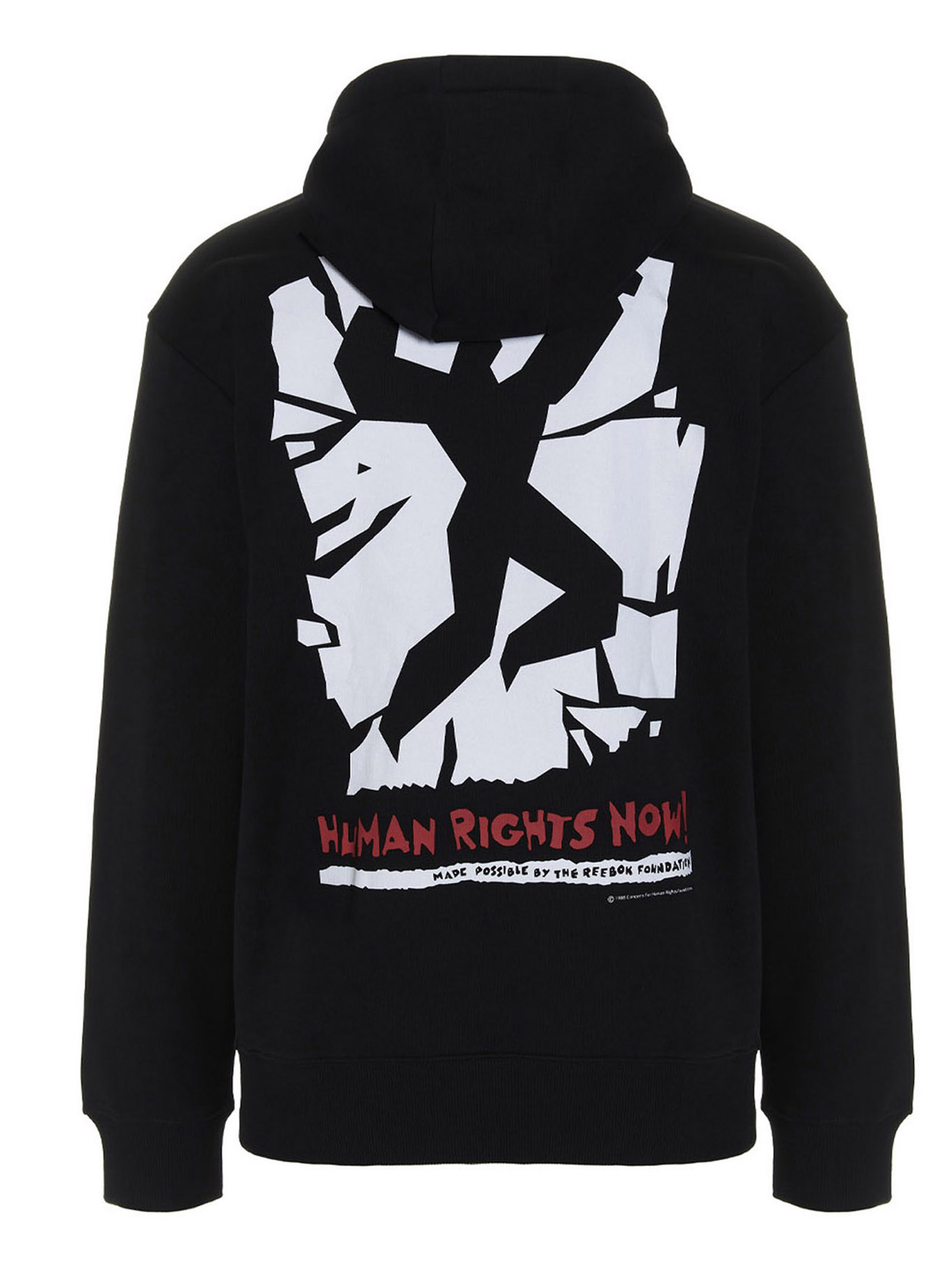 ‘HRN’ cotton hoodie with drawstring, kangaroo pocket and contrast front and back print. Fleeced reverse side. JULIAN SUSTAINABLE: product made from organic cotton.