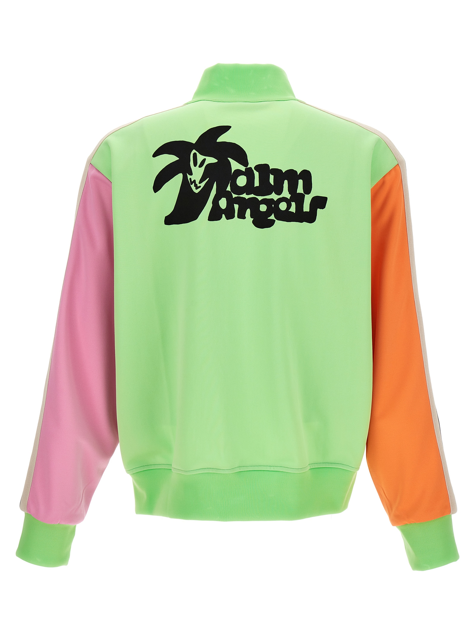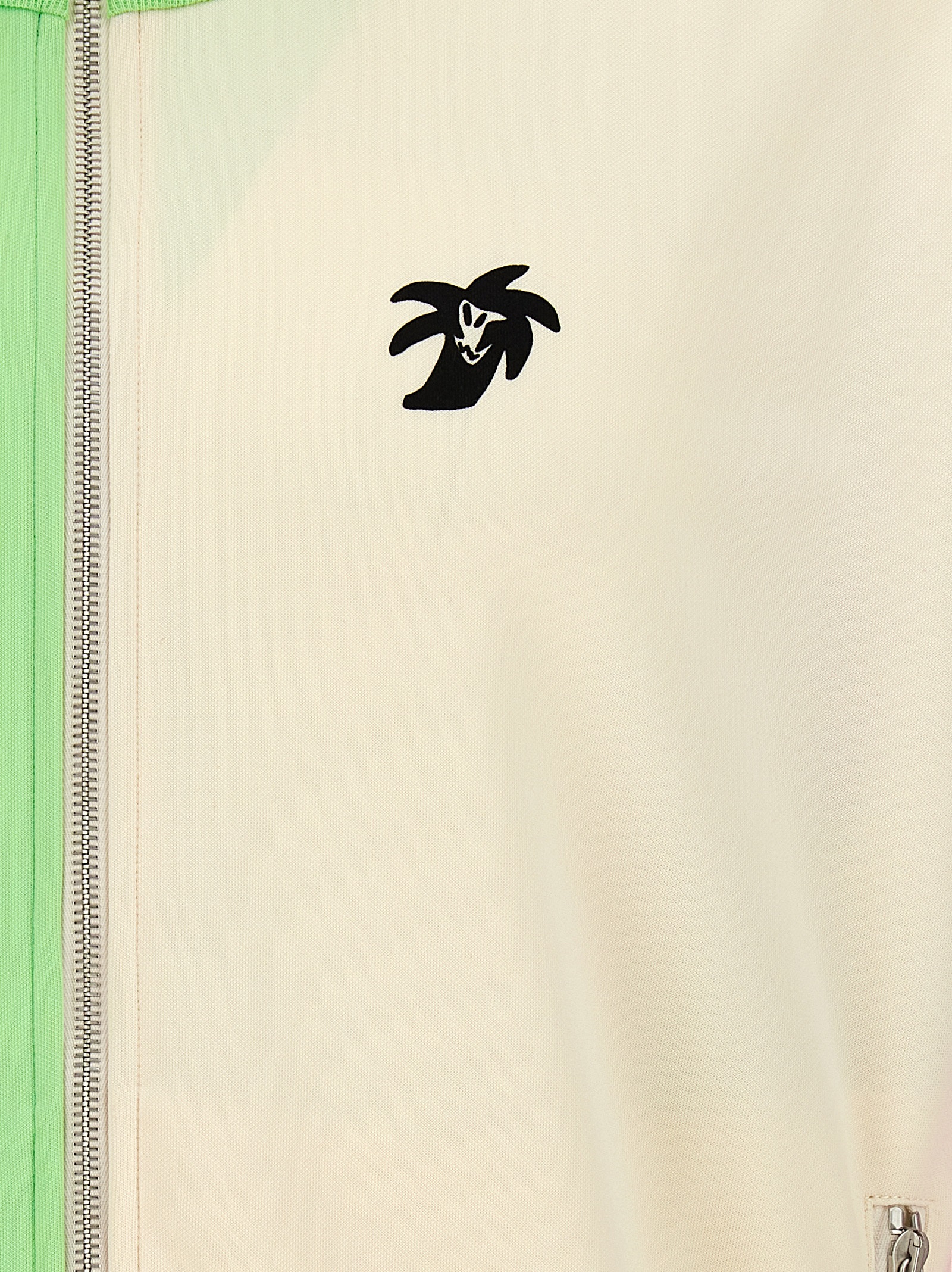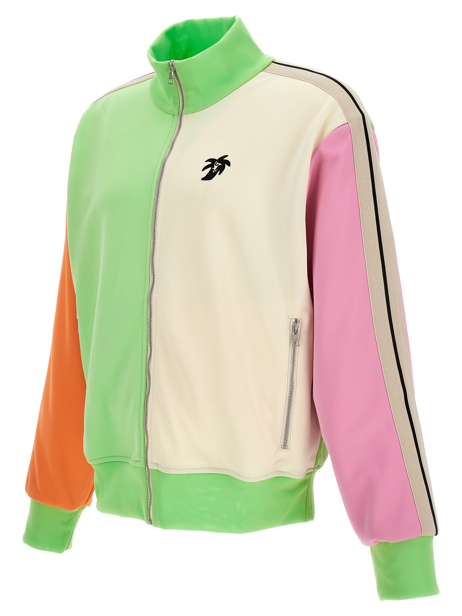 Hunter Colorblock Track sweatshirt in multicolor technical fabric with zipper closure, logo print on the front and back, pockets, high collar, long sleeves with cuffs, and contrasting bands on sleeves.