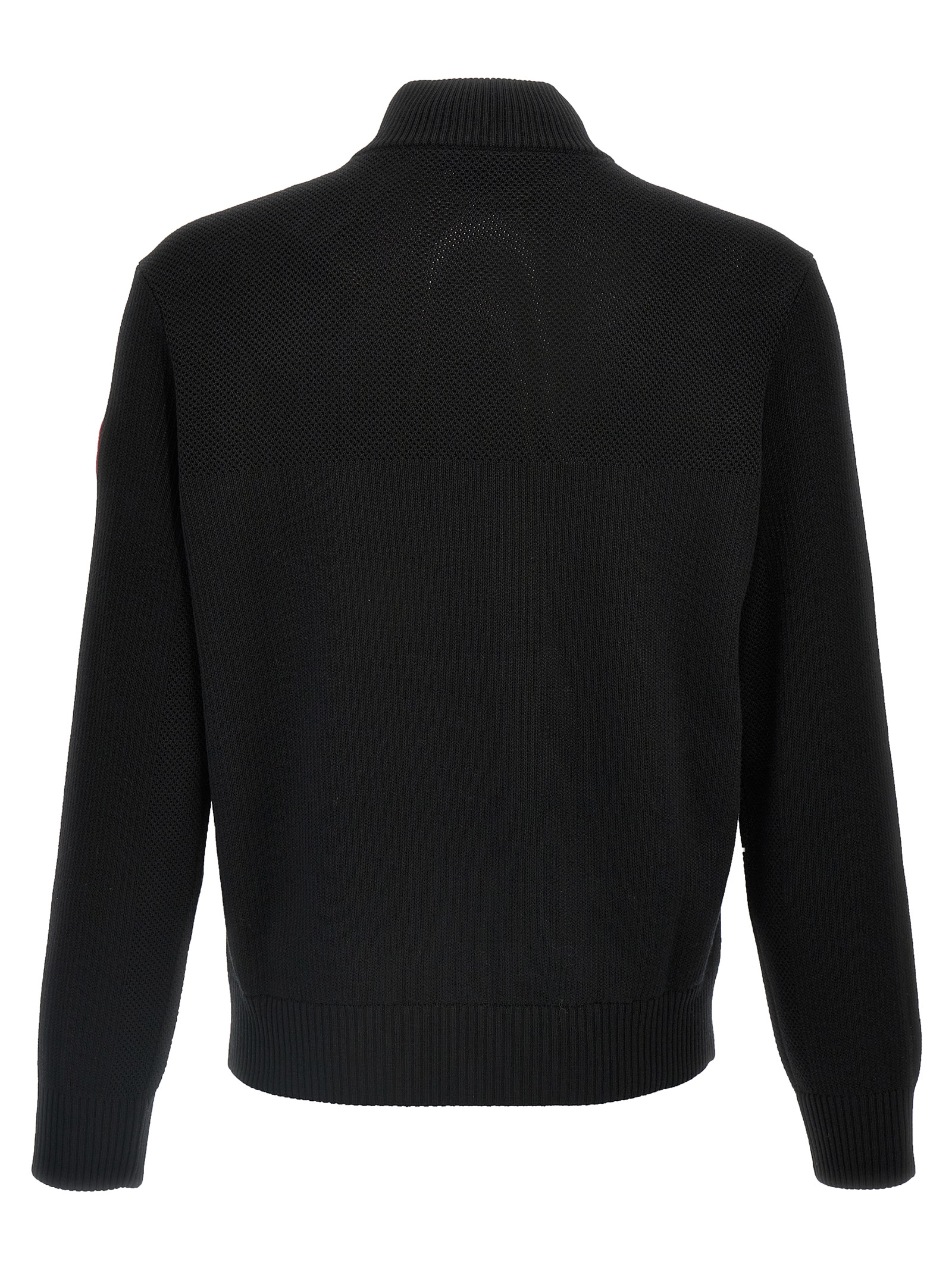 ‘HyBridge® Quilted Knit’ middle-weight merino wool jacket with water-repellent Performance Nylon insert quilted diamond and goose down padding, high neck, front zip closure, pockets, long cuffed sleeves and logo patch appliqué.