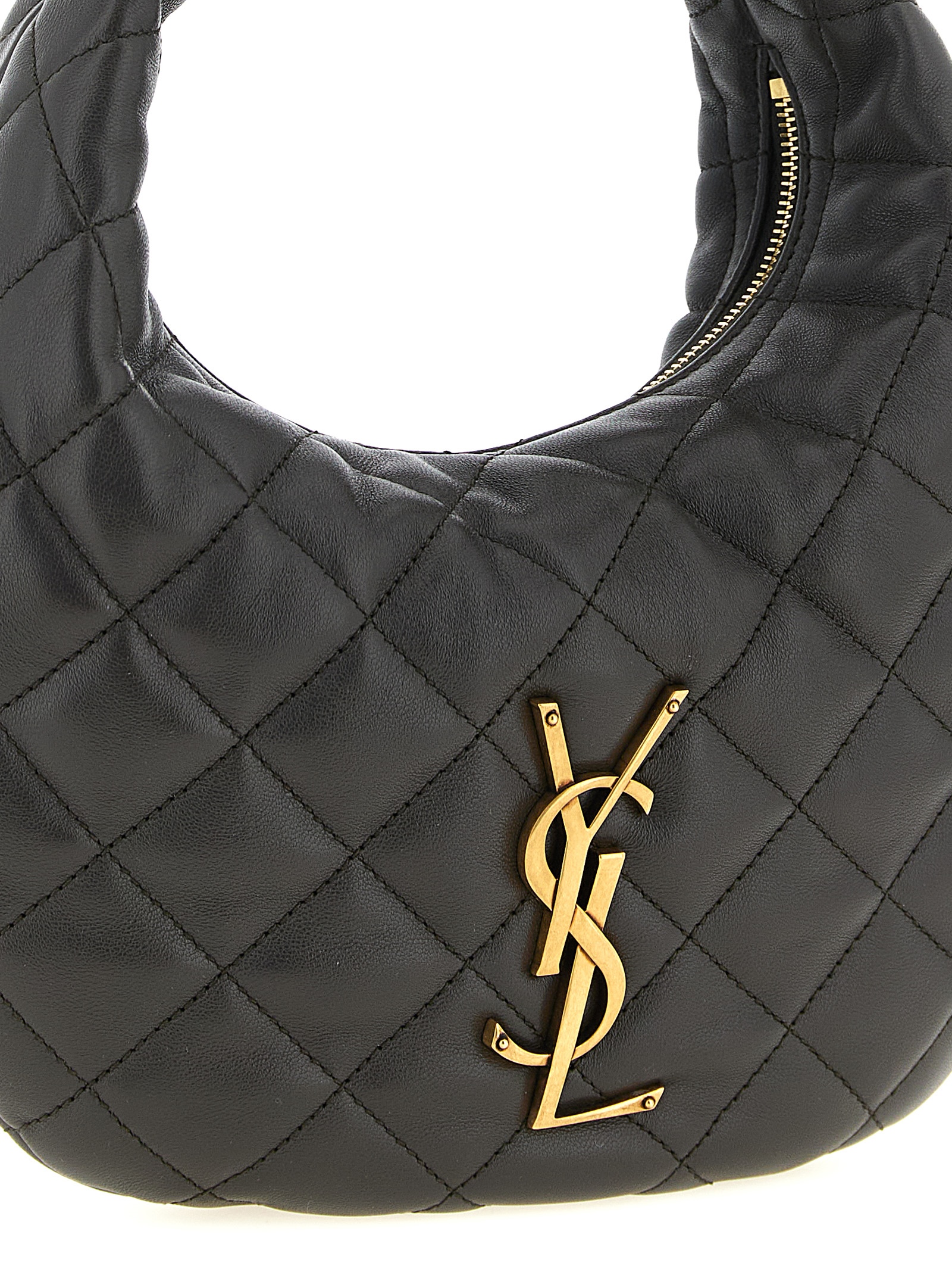 Baby ‘Icarino’ lamb nappa handbag with quilted check stitching, antiqued metal ‘Cassandre’ logo on the front, fixed handle, top zip closure, leather lining.