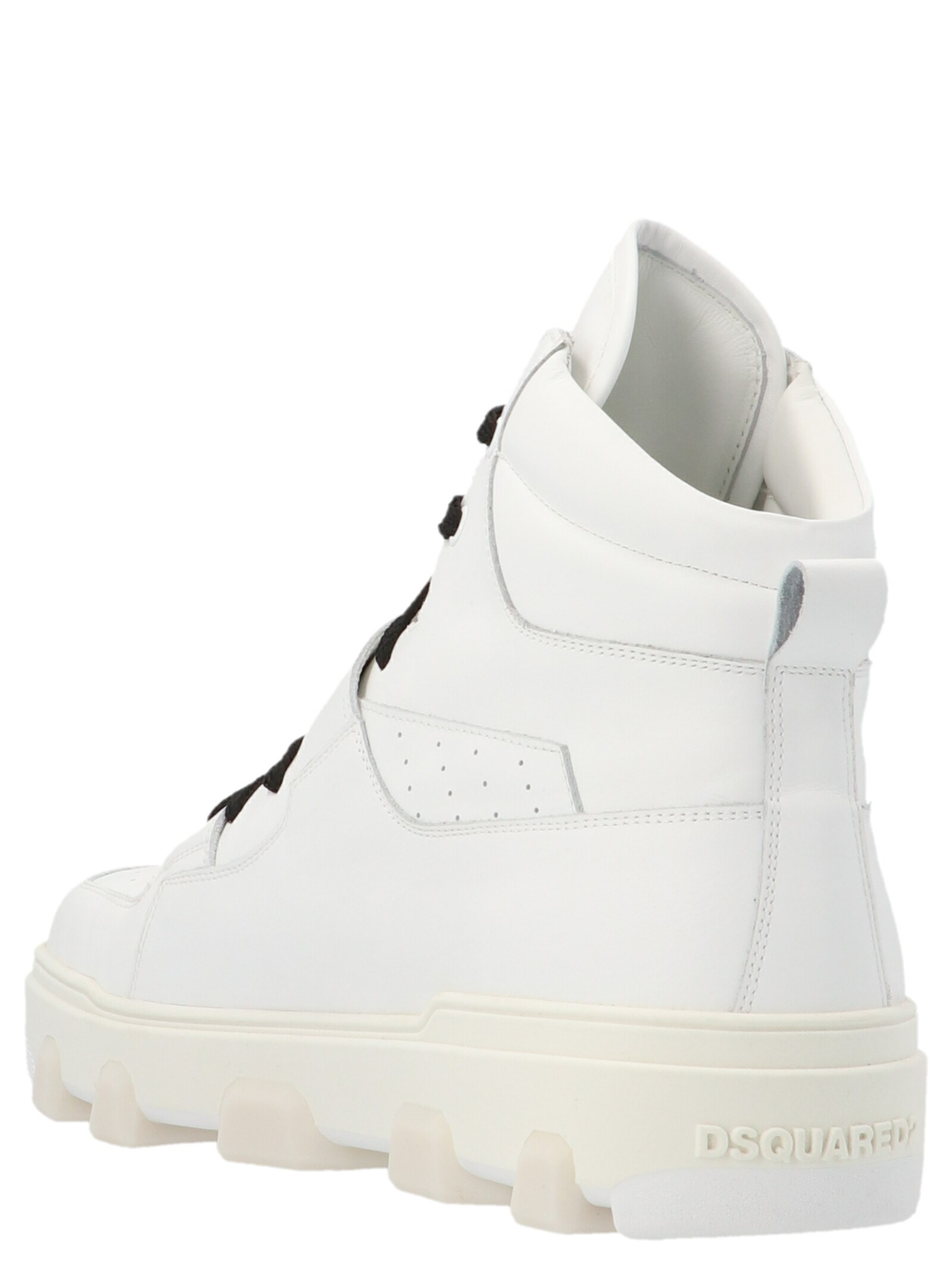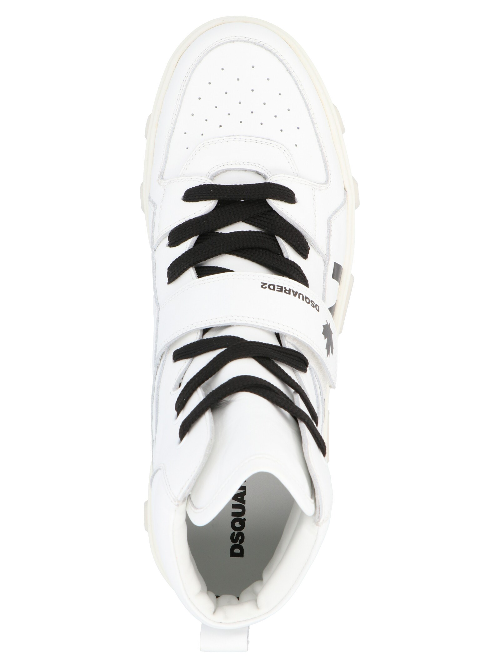 ‘Icon Basket’ high top, lace-up, leather sneakers with velcro strap, a logo print, contrast laces and a tank rubber sole.