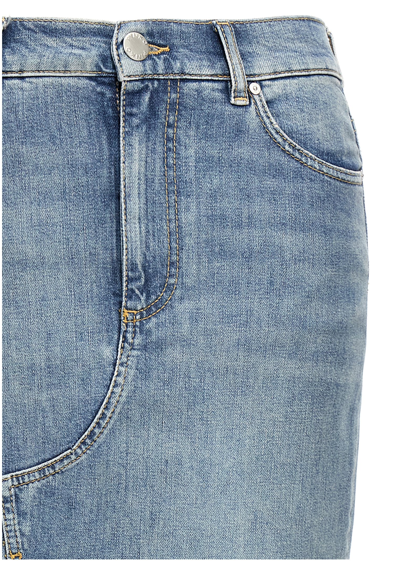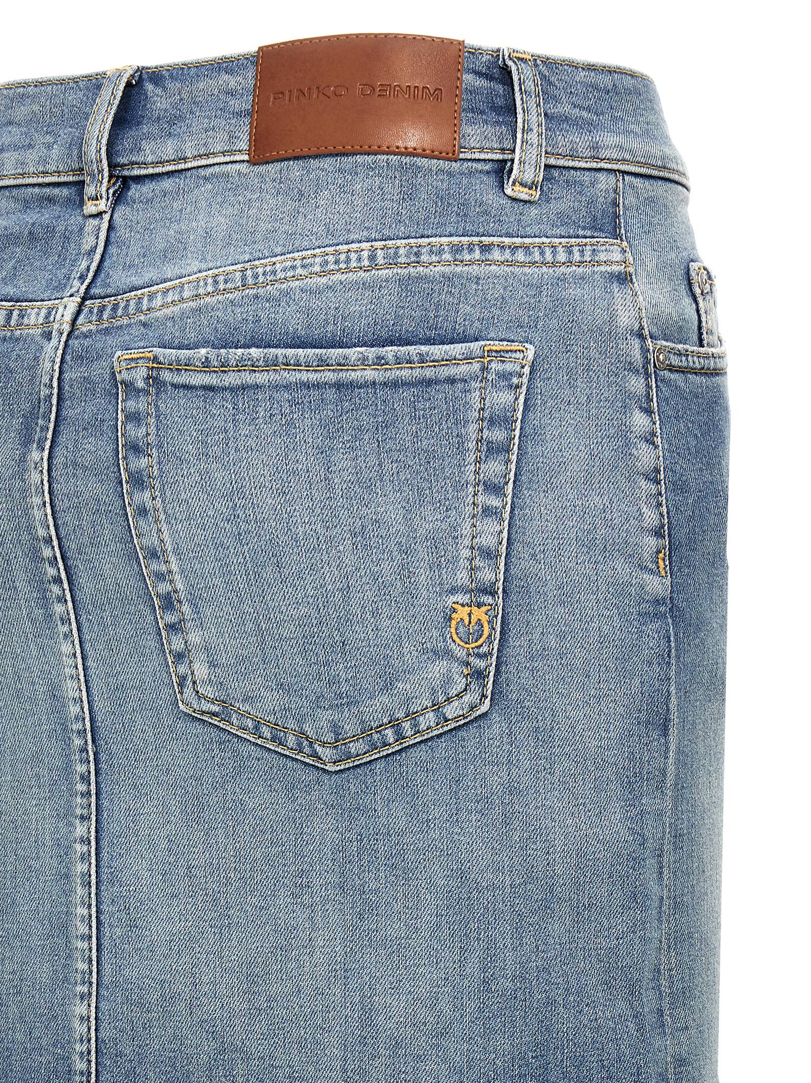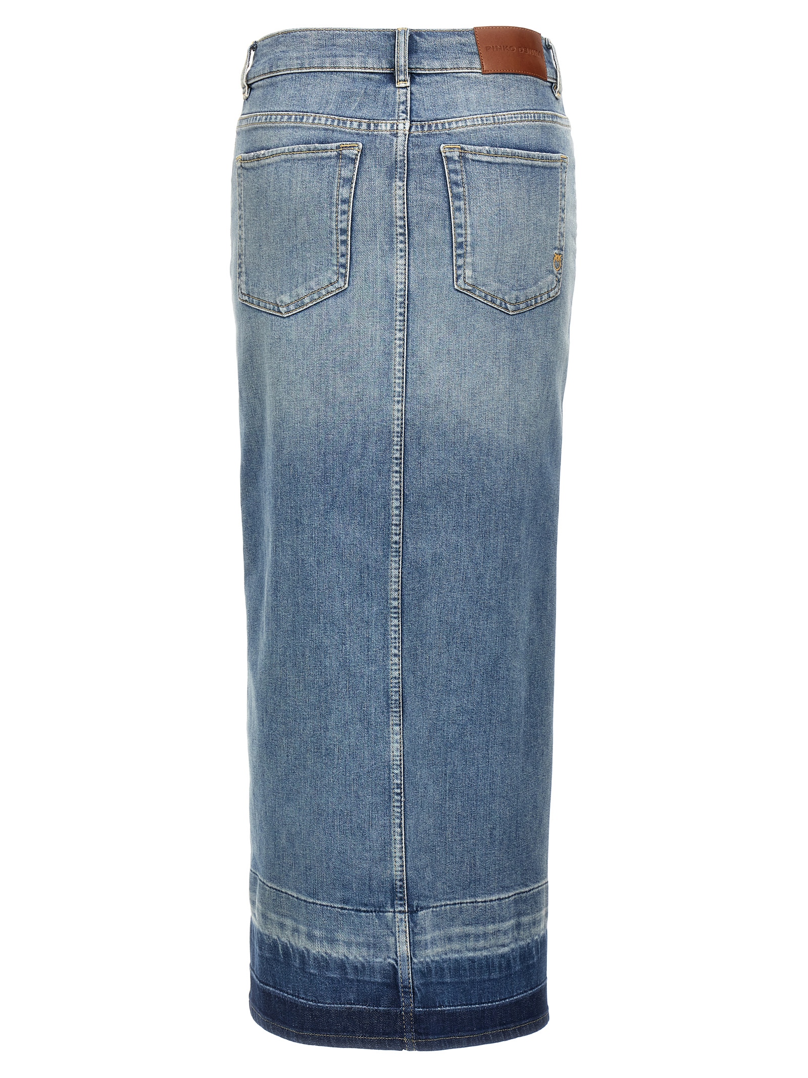 ‘Il Cairo’ cotton denim skirt with front split, zip and button closure, pockets, back logo tag.