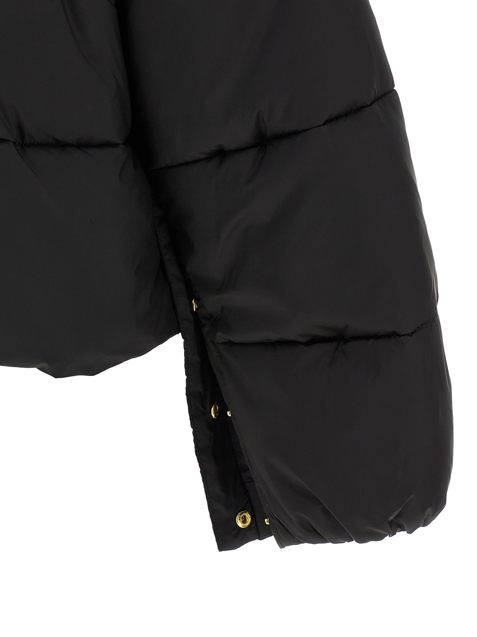 ‘Impasto’ quilted and padded technical canvas down jacket with semi-gloss finish, large adjustable hood, high neck, front zip and snap button closure, long sleeves with elastic cuffs and tone-on-tone ‘Love Birds’ logo patch, drawstring on the hem.
