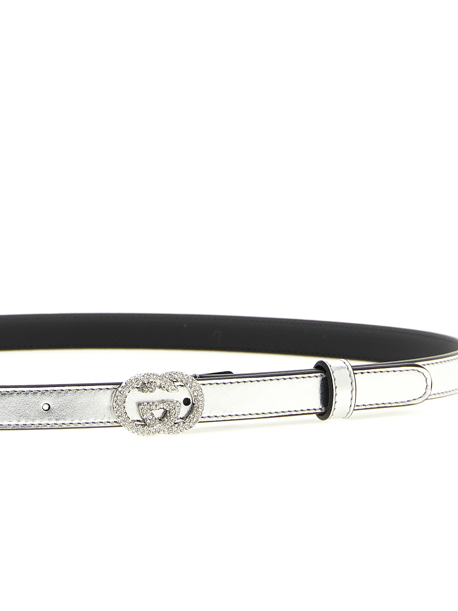 Thin belt in metallic smooth nappa leather, metal ‘Incrocio GG’ buckle with crystals.h crystals.