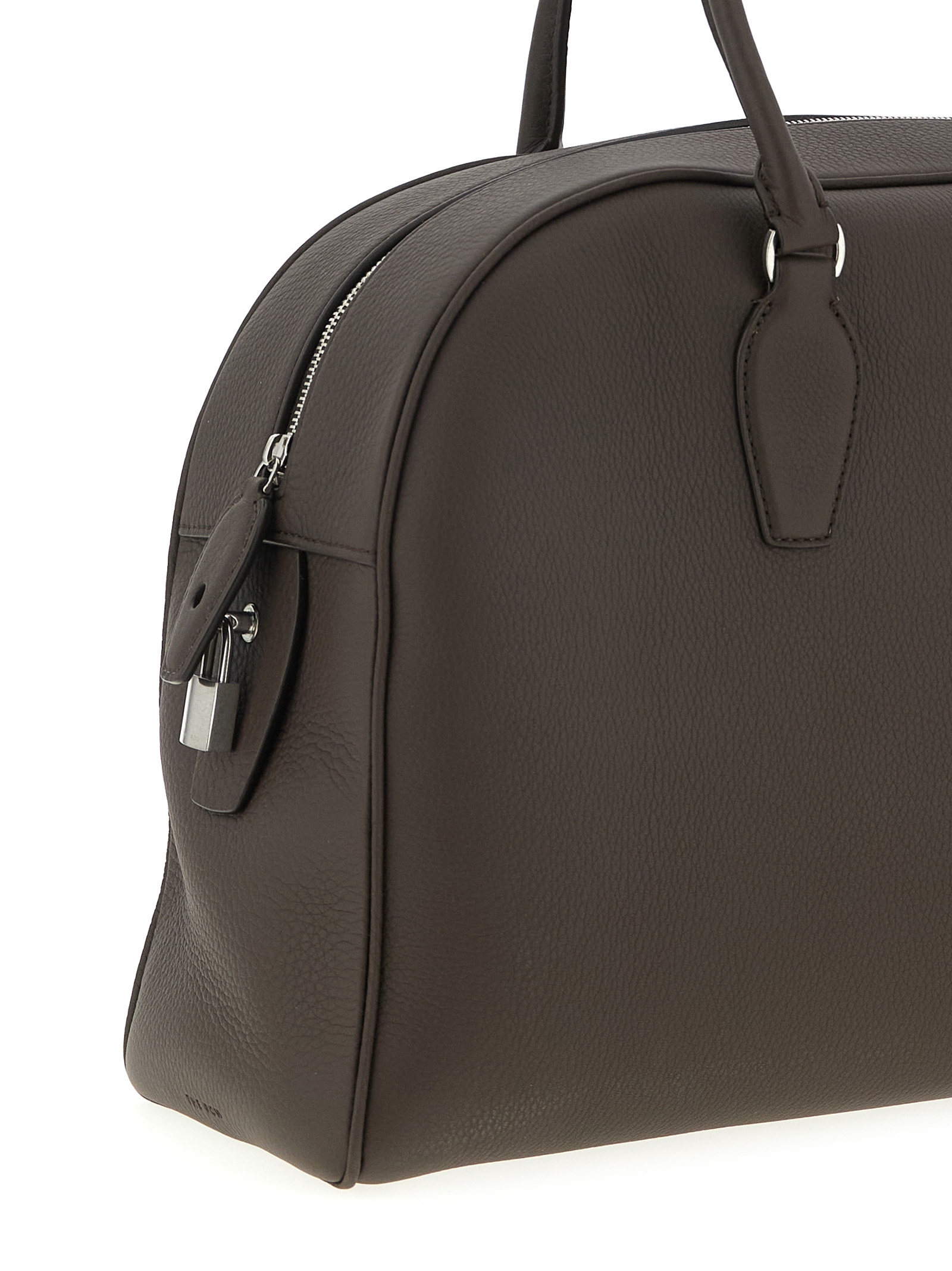 India’ hammered calf leather bowling bag, double fixed tubular handle, zip closure, removable padlock and metal key.