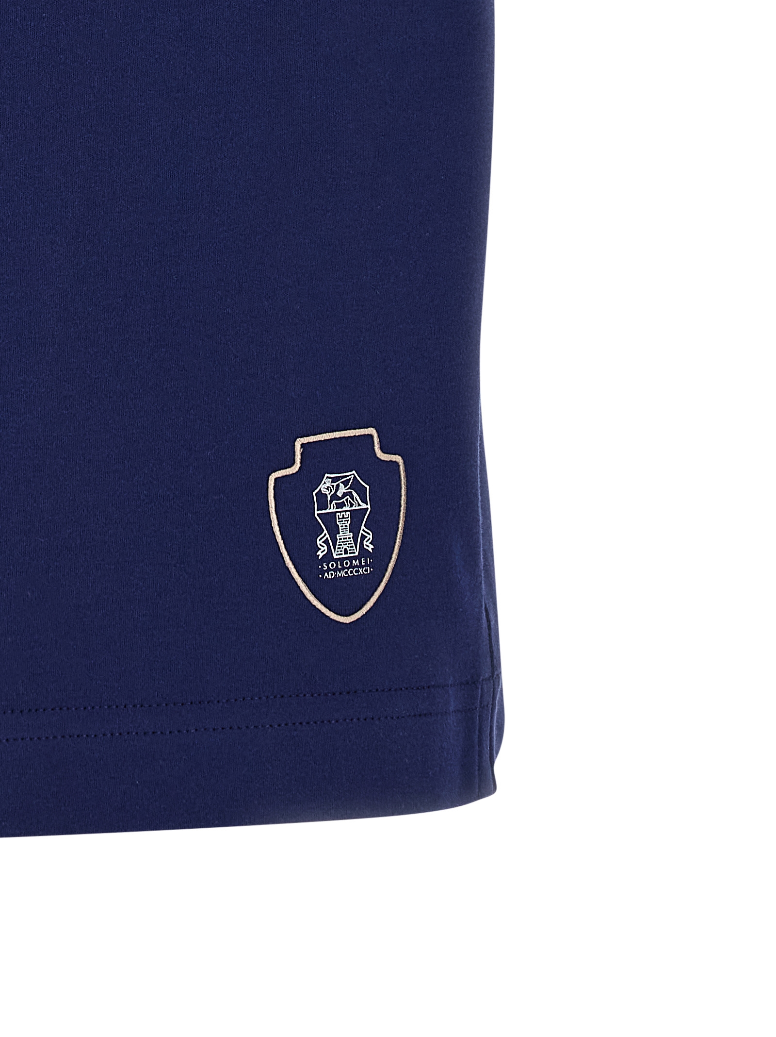 Bermuda shorts in cotton interlock, front logo embroidery, trompe l’oeil flap, elastic waistband with drawstring, pockets, side slits on the leg bottoms.