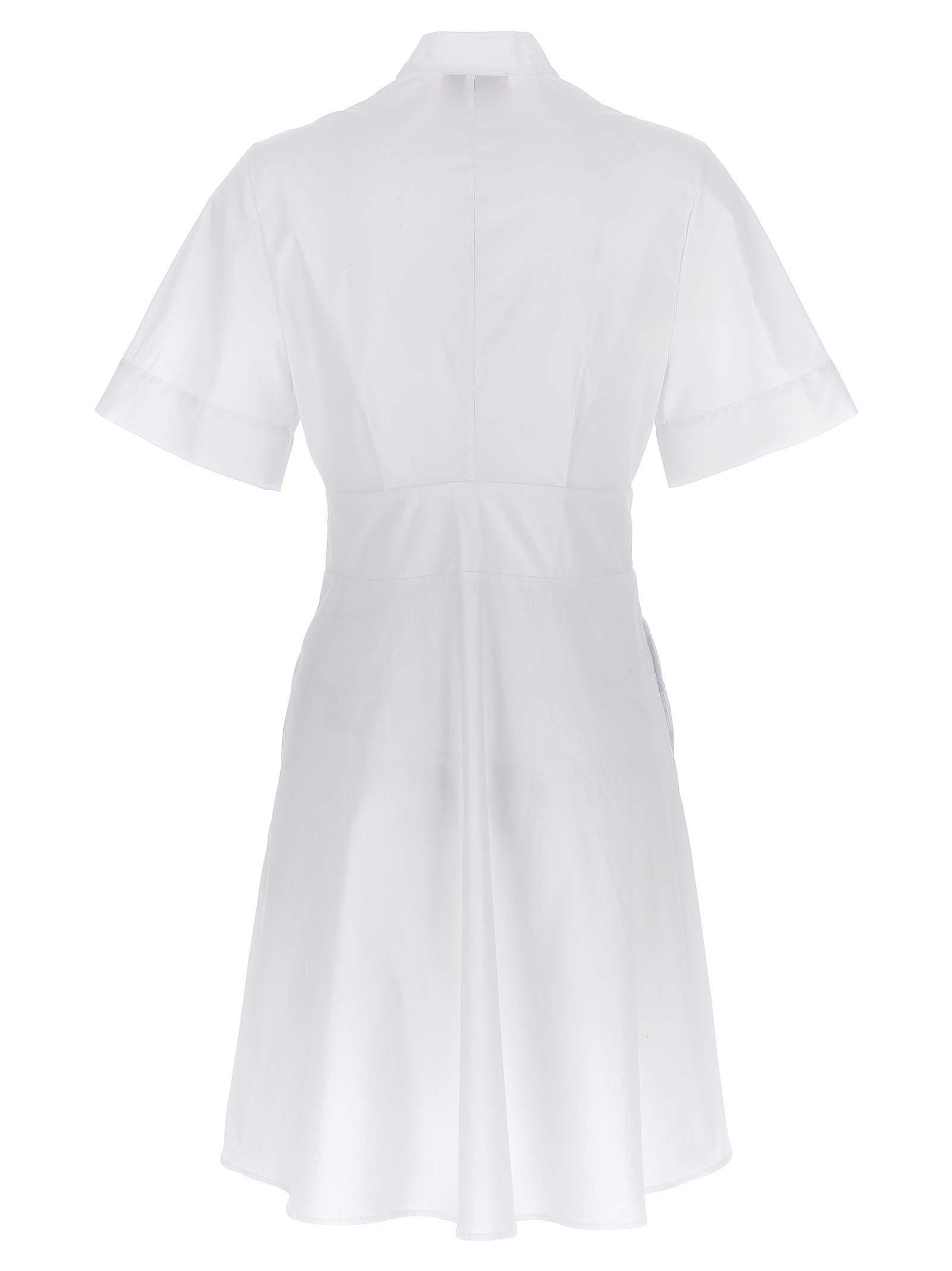 ‘Plexiglas’ cotton poplin dress with mini style and short sleeves, front buttons and a plastron.