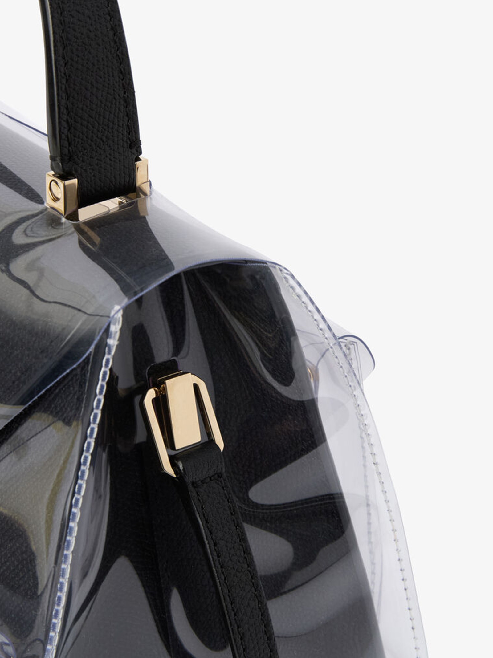 ‘Inside mini’ clear plastic raincoat with logo, front flap and pockets.