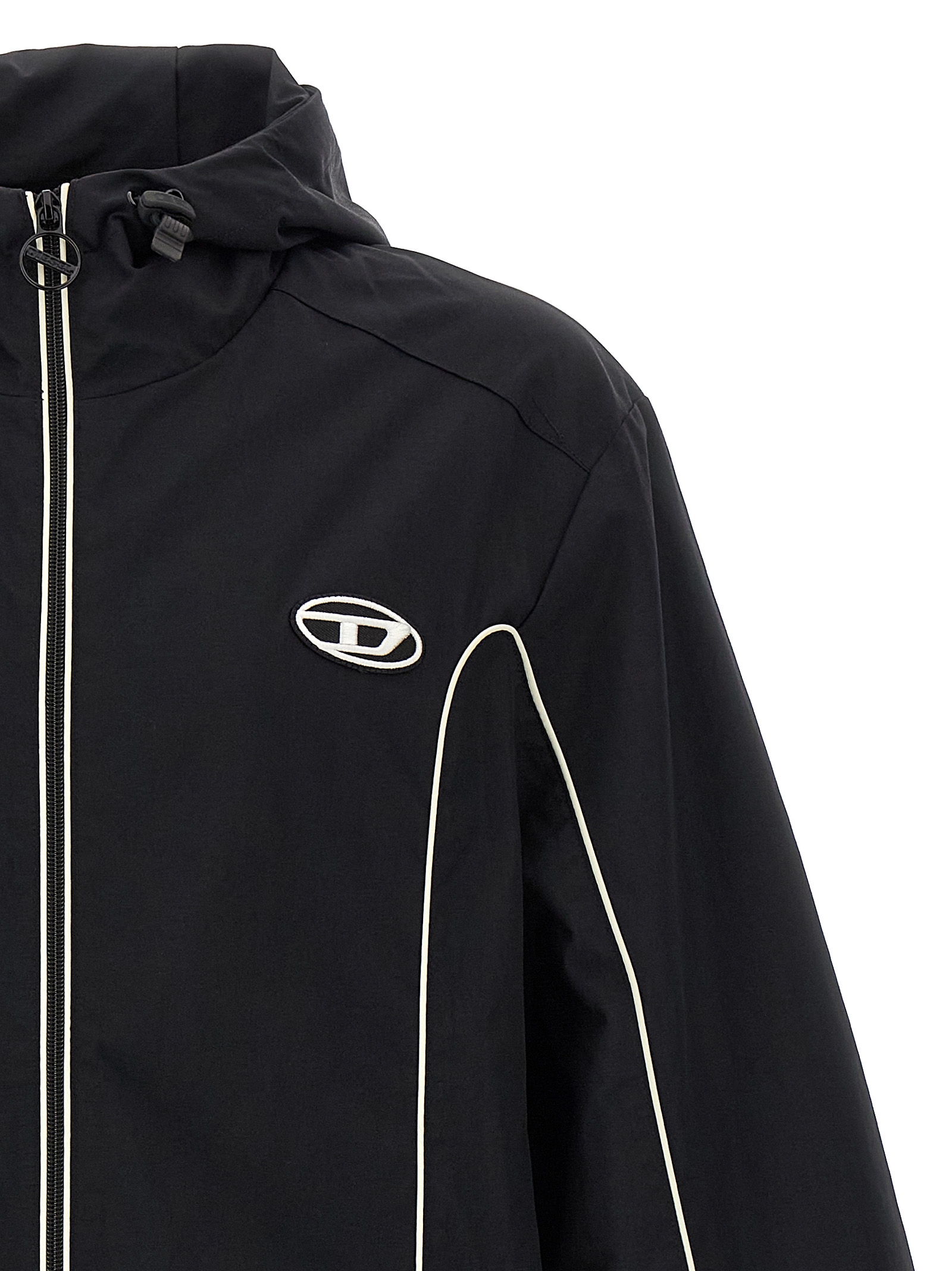 J-Hives tear-resistant CORDURA® fabric windbreaker jacket with breathable waterproof inner membrane and contrasting profiling, mesh lining, adjustable hood, logo patch and front zip closure, pockets, long sleeves, drawstring on the hem.