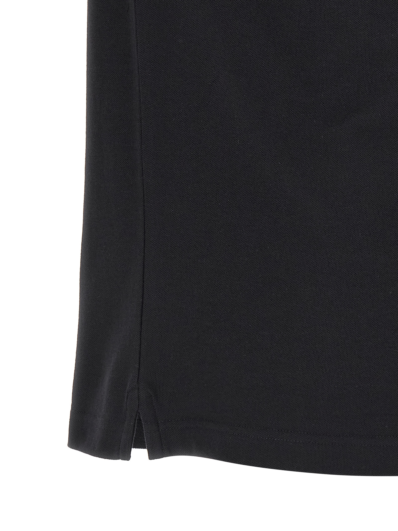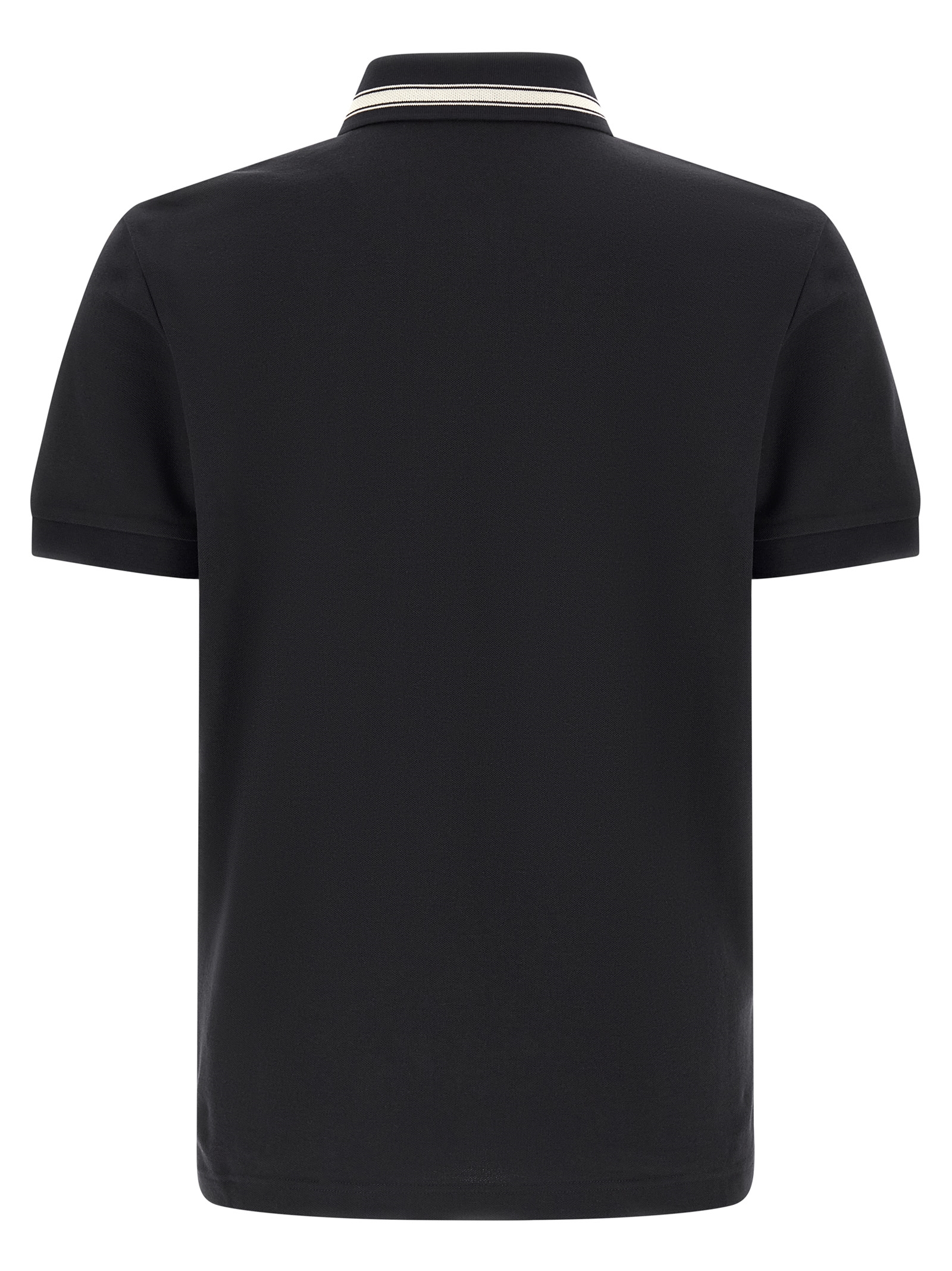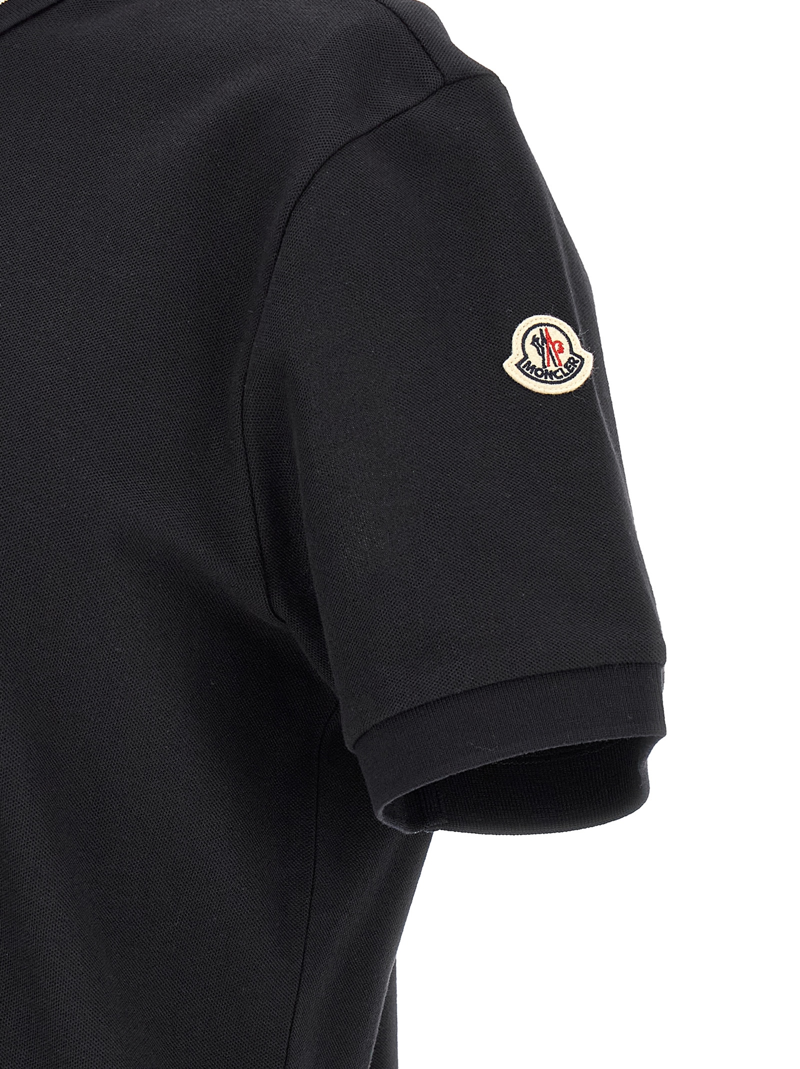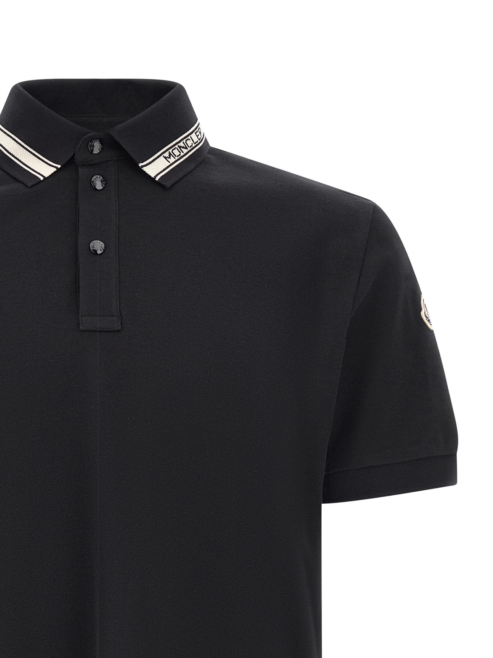 Piqué cotton polo shirt, collar with contrast jacquard logo and snap buttons, short sleeves with cuffs, felt logo patch, side splits.