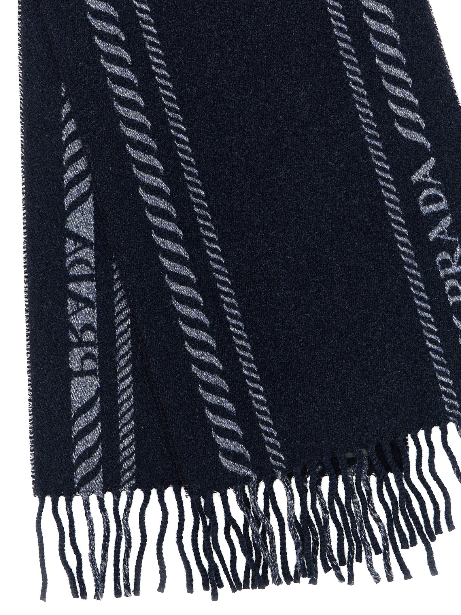Jacquard patterned virgin wool and cashmere scarf, fringed edges.